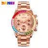 Reloj de cuarzo con diamantes Skmei para hombre, con calendario doble, estilo de comercio exterior, con correa de acero y temperamento para negocios.