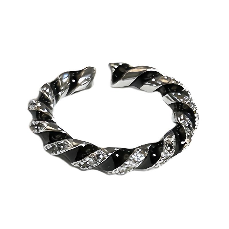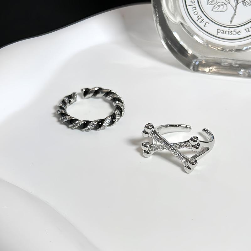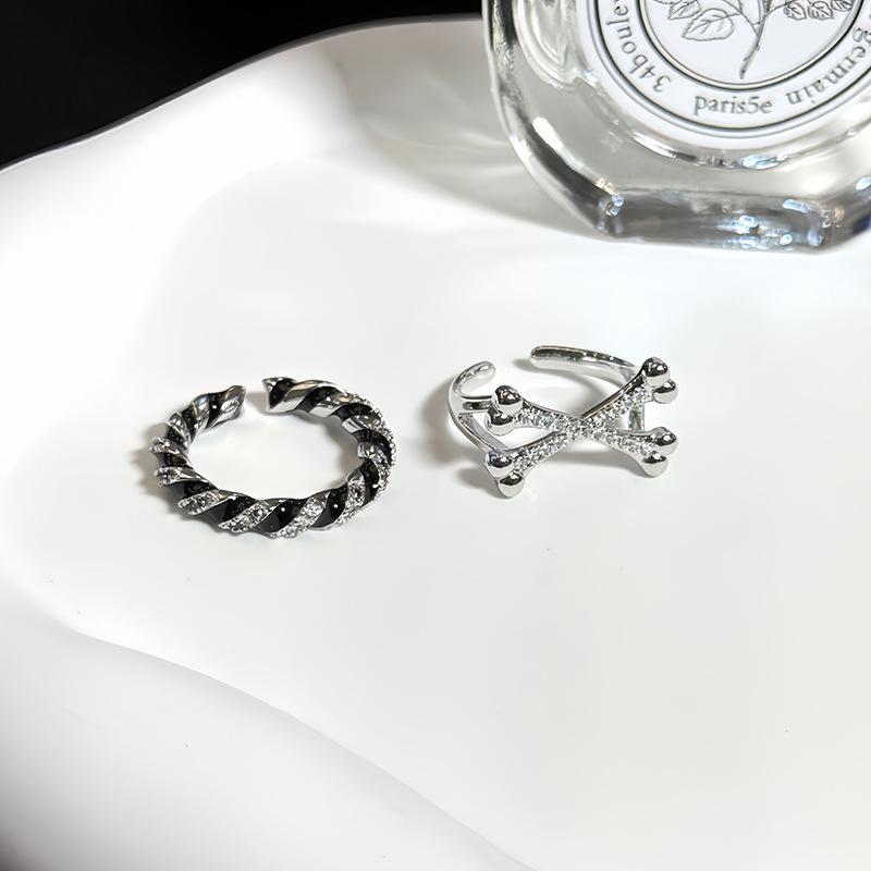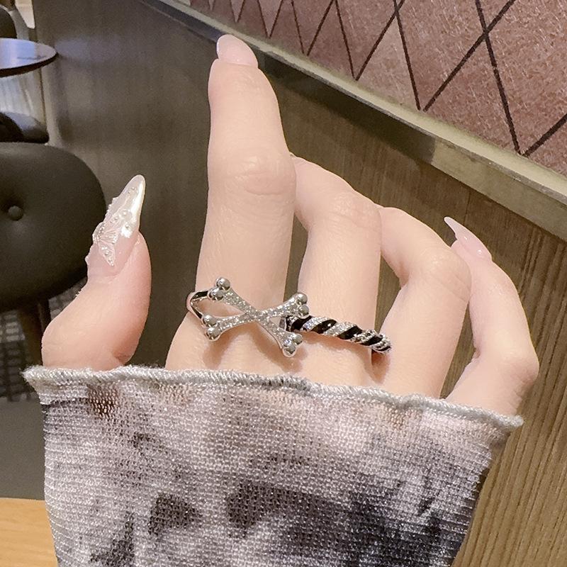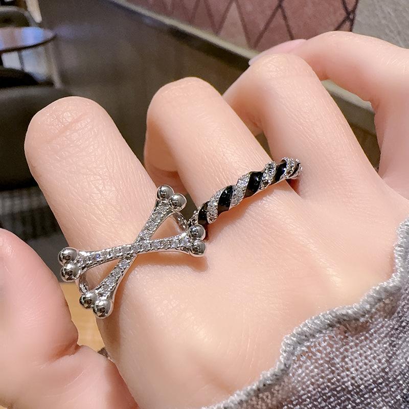 Anillo abierto de circonita con diseño de nicho personalizado, esmalte negro goteado, viento frío ins femenino, anillo de hueso de moda