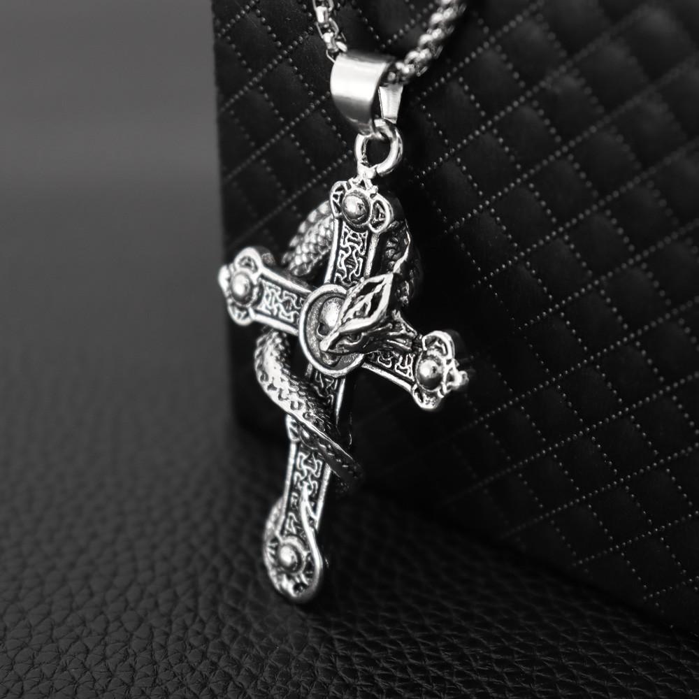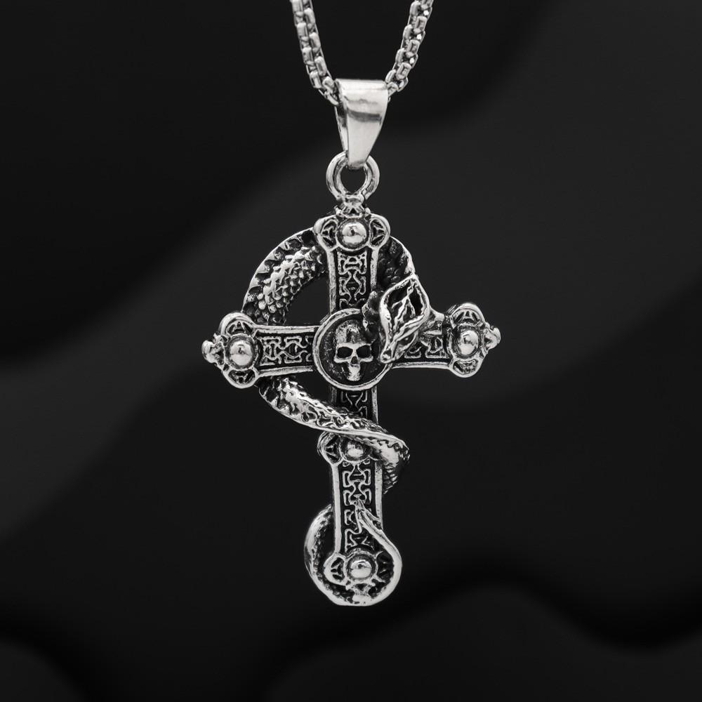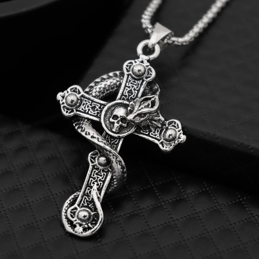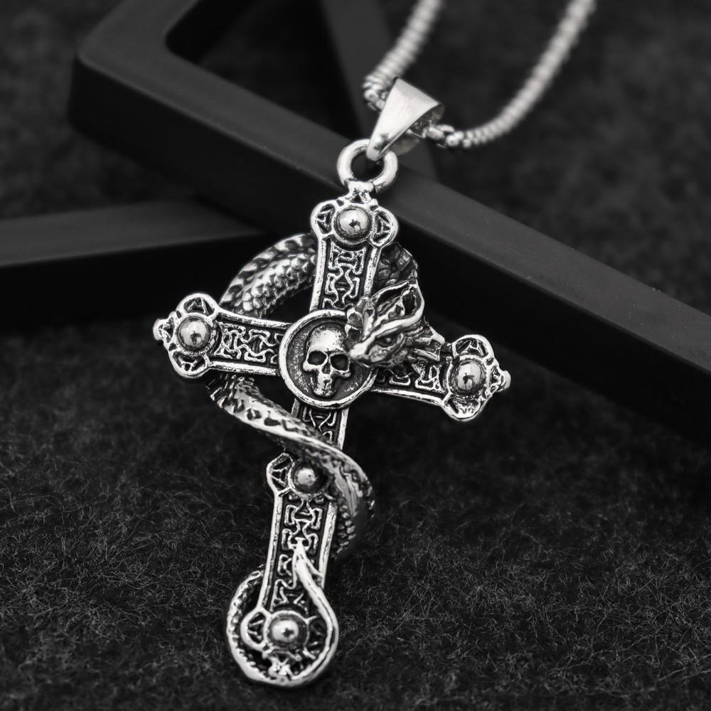 Venta caliente Temu, collar con cruz de dragón y calavera transfronteriza europea y americana, colgante retro dominante para hombre, joyería personalizada de calle