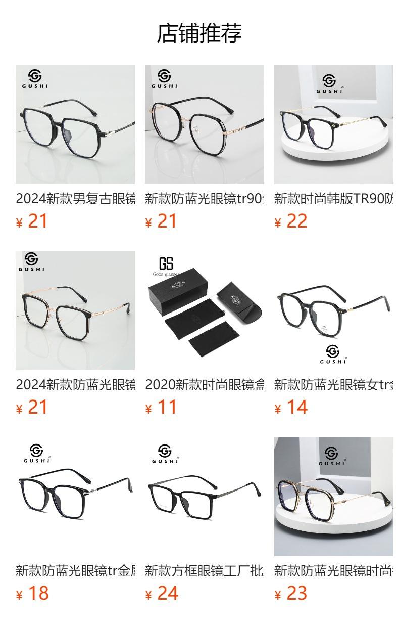 Nuevas gafas de moda coreanas TR90 anti-luz azul, gafas de alta sensibilidad, monturas lisas para hombres y mujeres, venta al por mayor