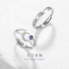 Anillo de pareja de plata de ley 925 con diseño de sol y luna para mujer, ligero, lujoso, abierto, con diseño sencillo y de alta calidad.