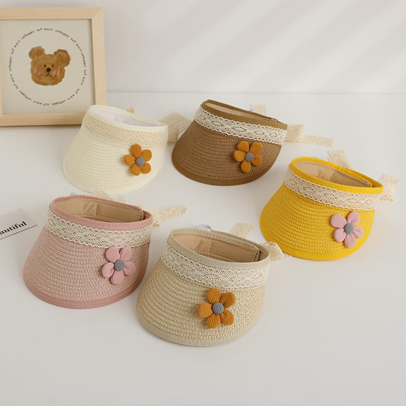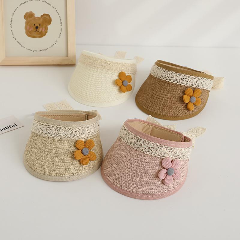 Sombrero protector solar para niños, sombrero parasol para niñas, sombrero de paja de verano, sombrero para niños, sombrero de copa vacío para bebés, banda para el cabello, sombrero para el sol de playa