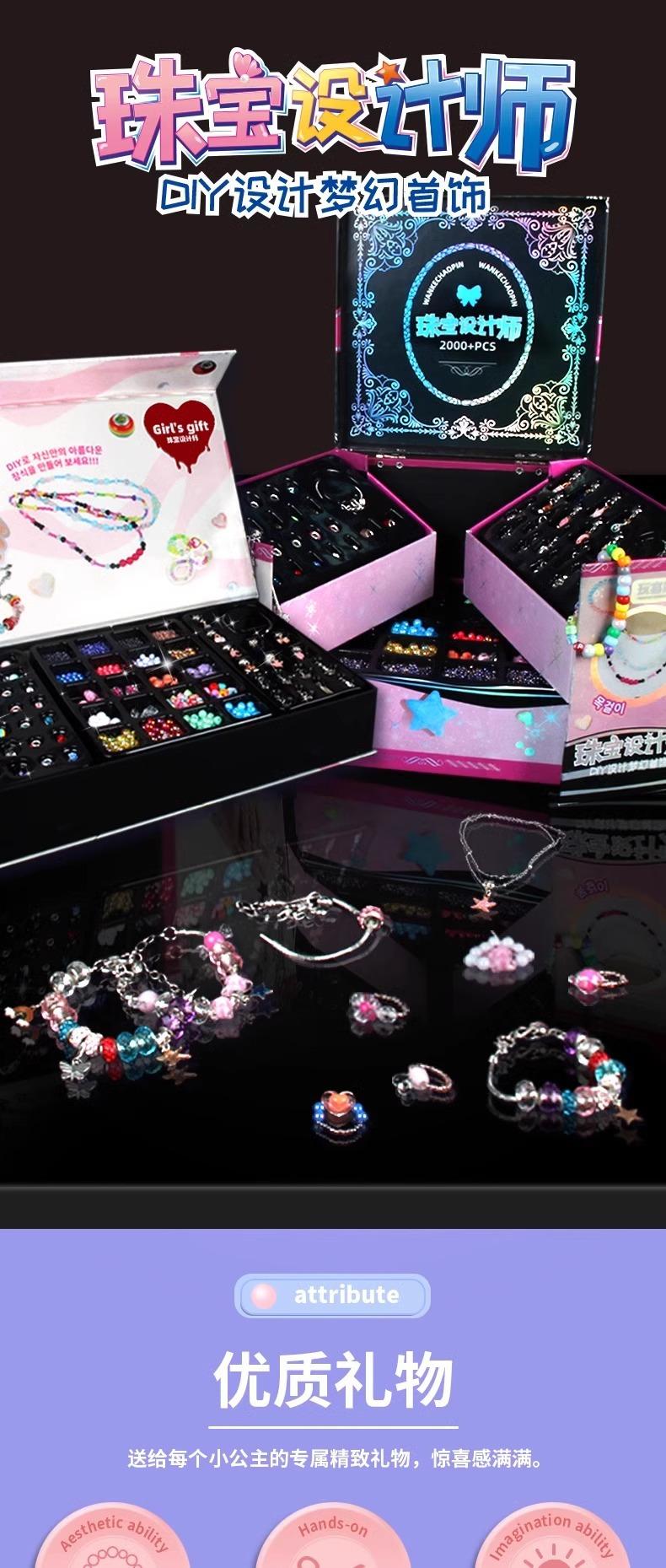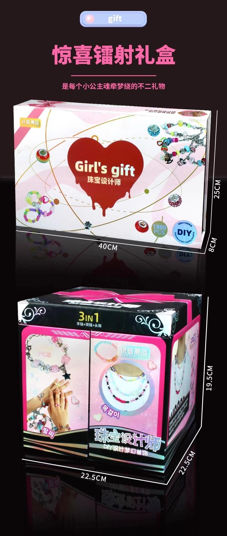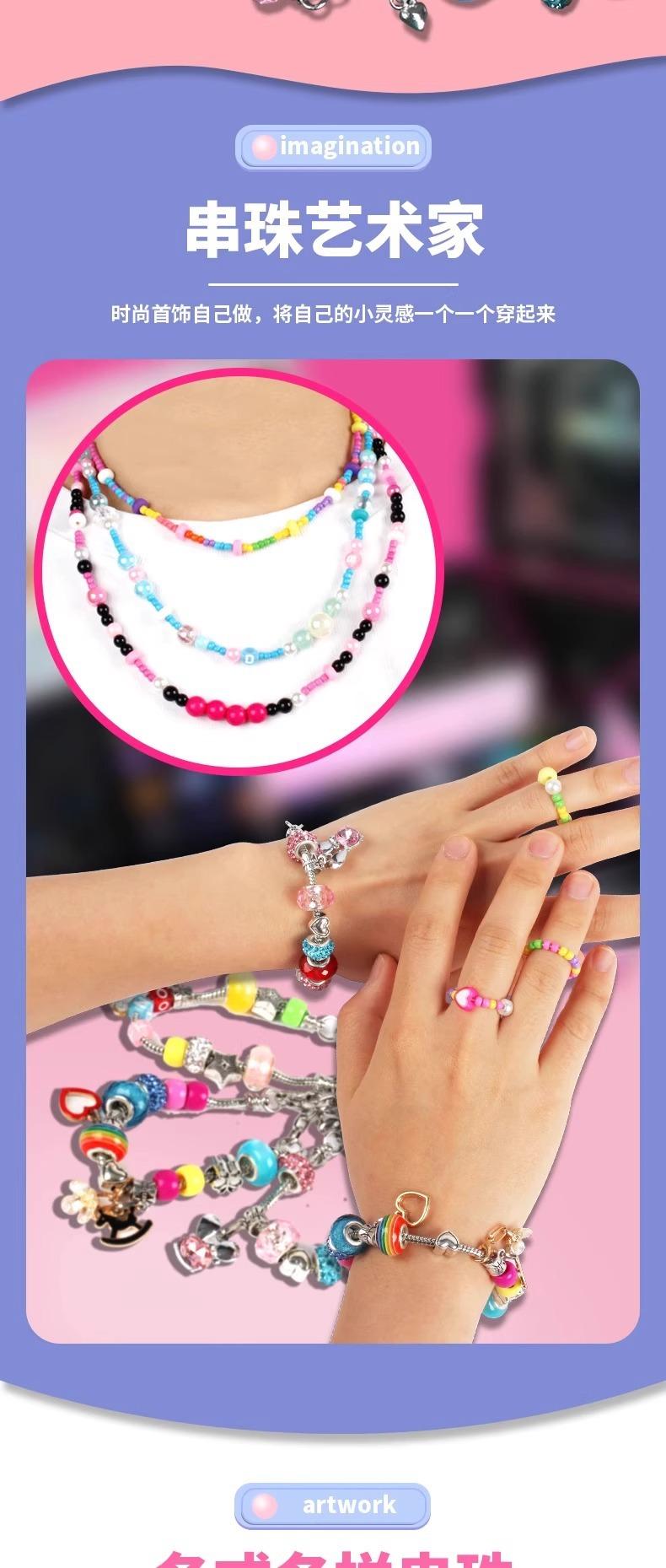 Compra Diseño de joyería de bricolaje hecha a mano con cuentas para niños, bolso, collar, pulsera, pulsera de joyería, caja de regalo para niña con cuentas al por mayor en Joom.pro