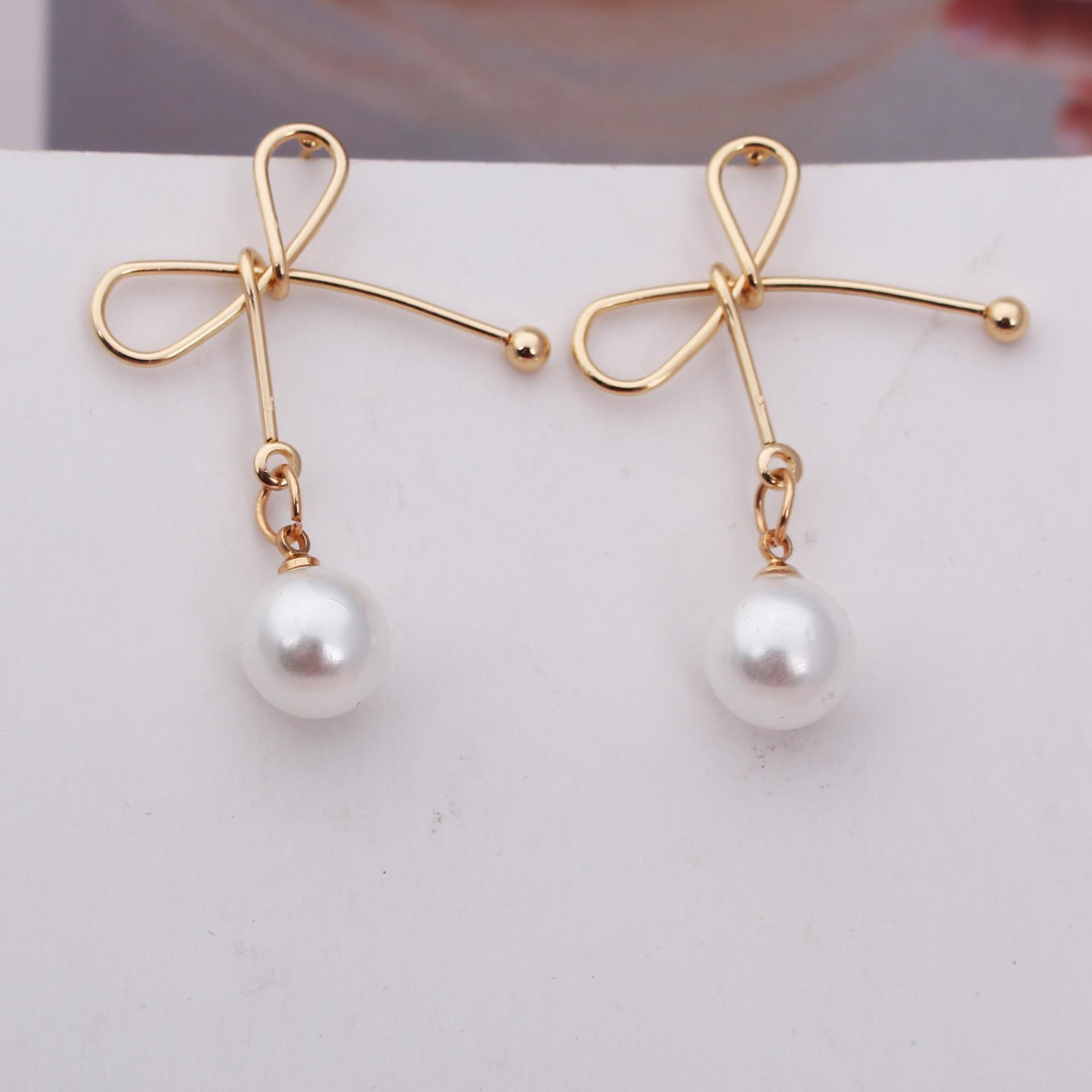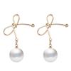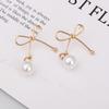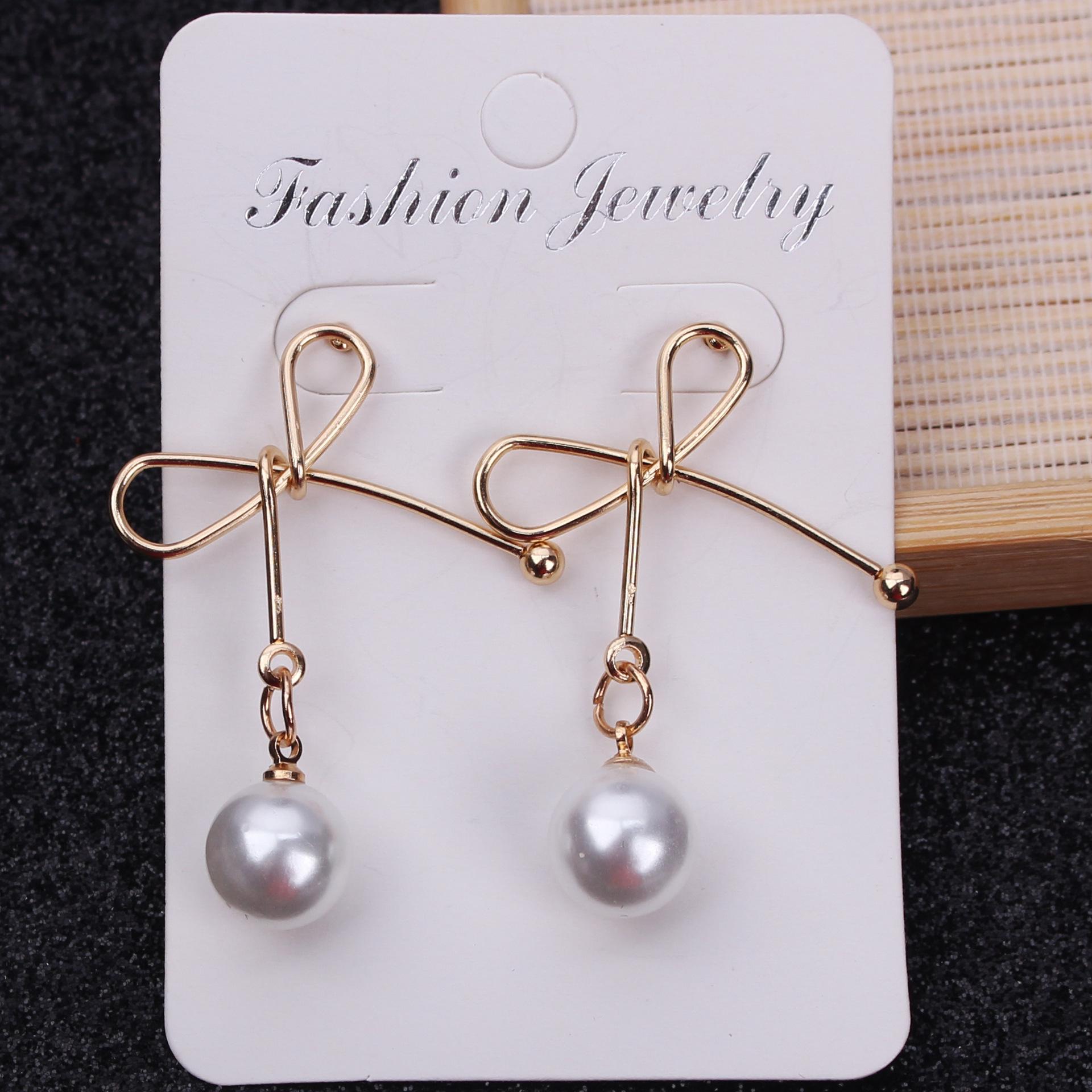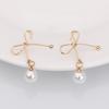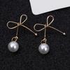 Pendientes geométricos de perla con lazo, joyería de estilo coreano, sencillos y fríos, elegantes y combinables, a la moda, para mujer.