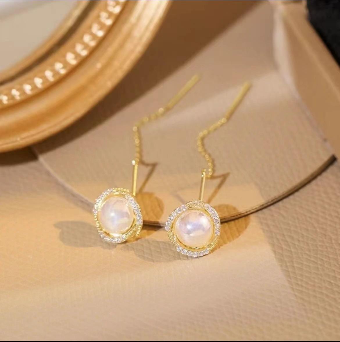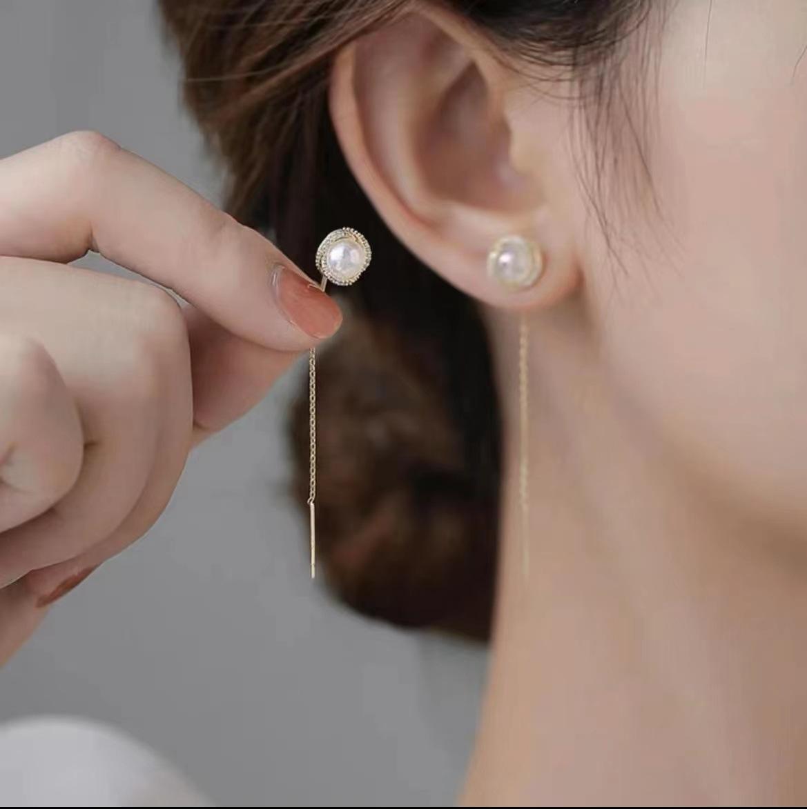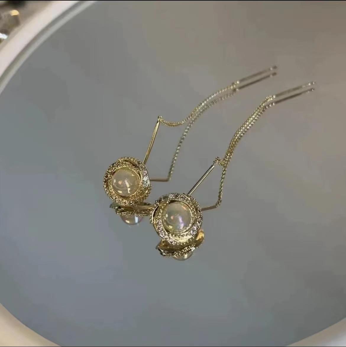 Pendientes de aleación de cobre, pendientes de cuentas, pendientes de nicho de estilo extranjero de lujo, ligeros y de alta sensación, nuevos pendientes largos y delicados de moda 2024
