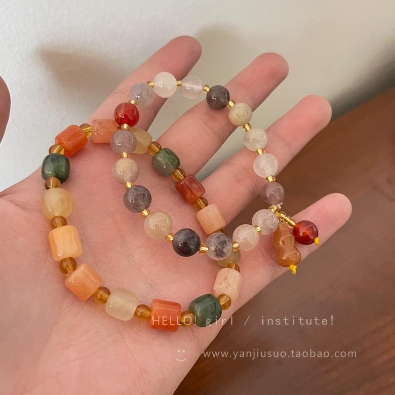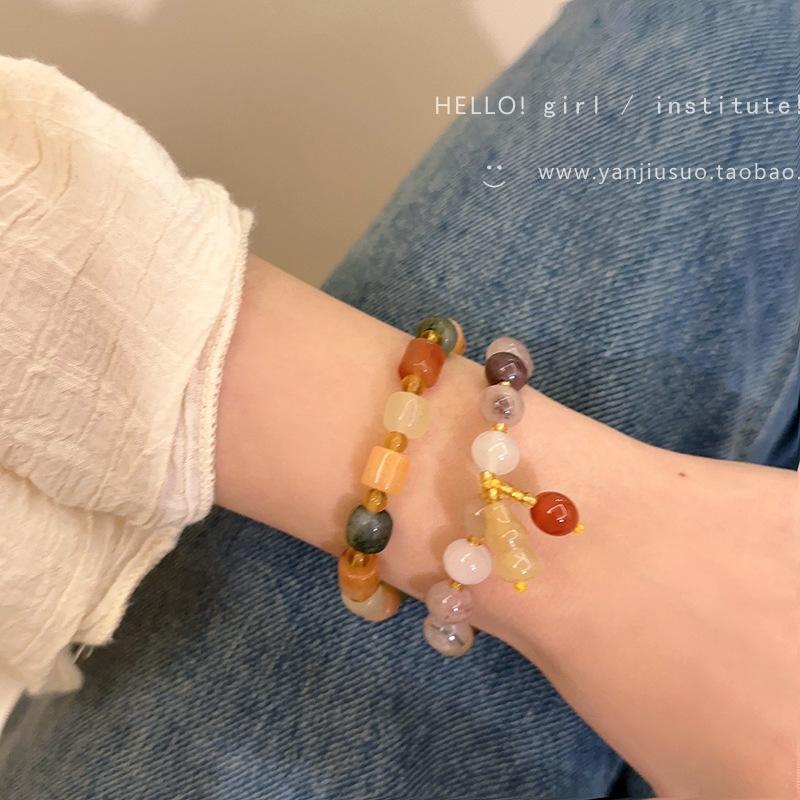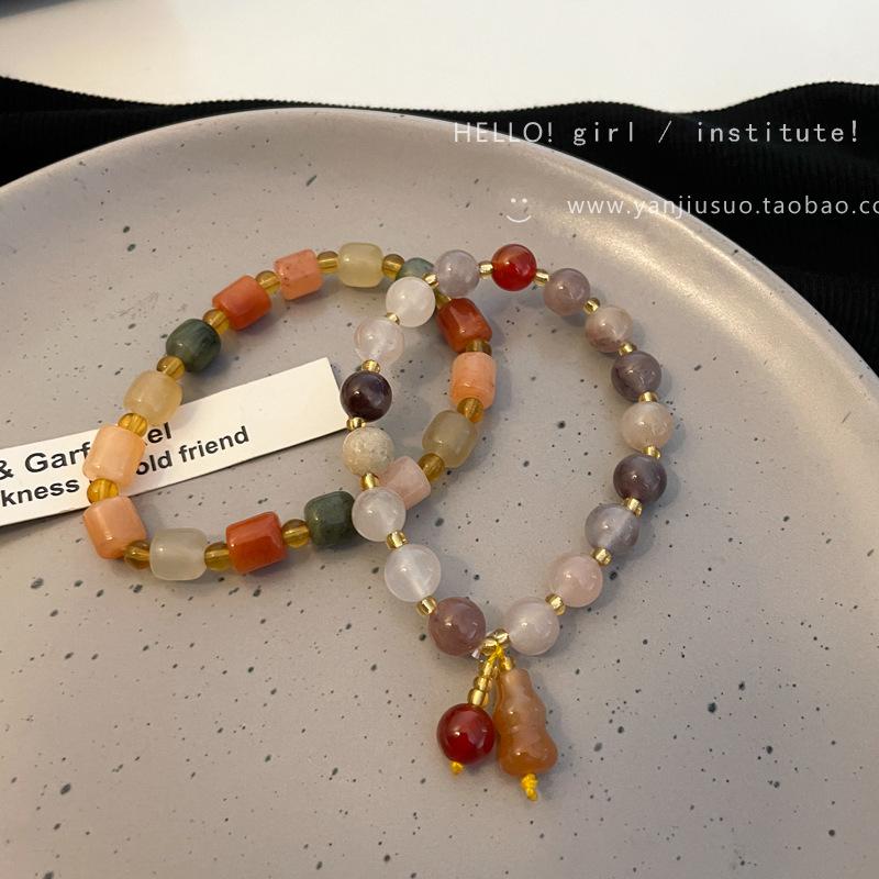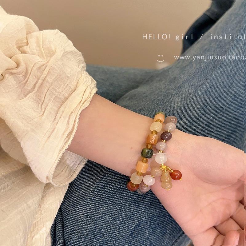 Natural Stone Gourd Bracelet, Contrast Cylindrical Bracelet