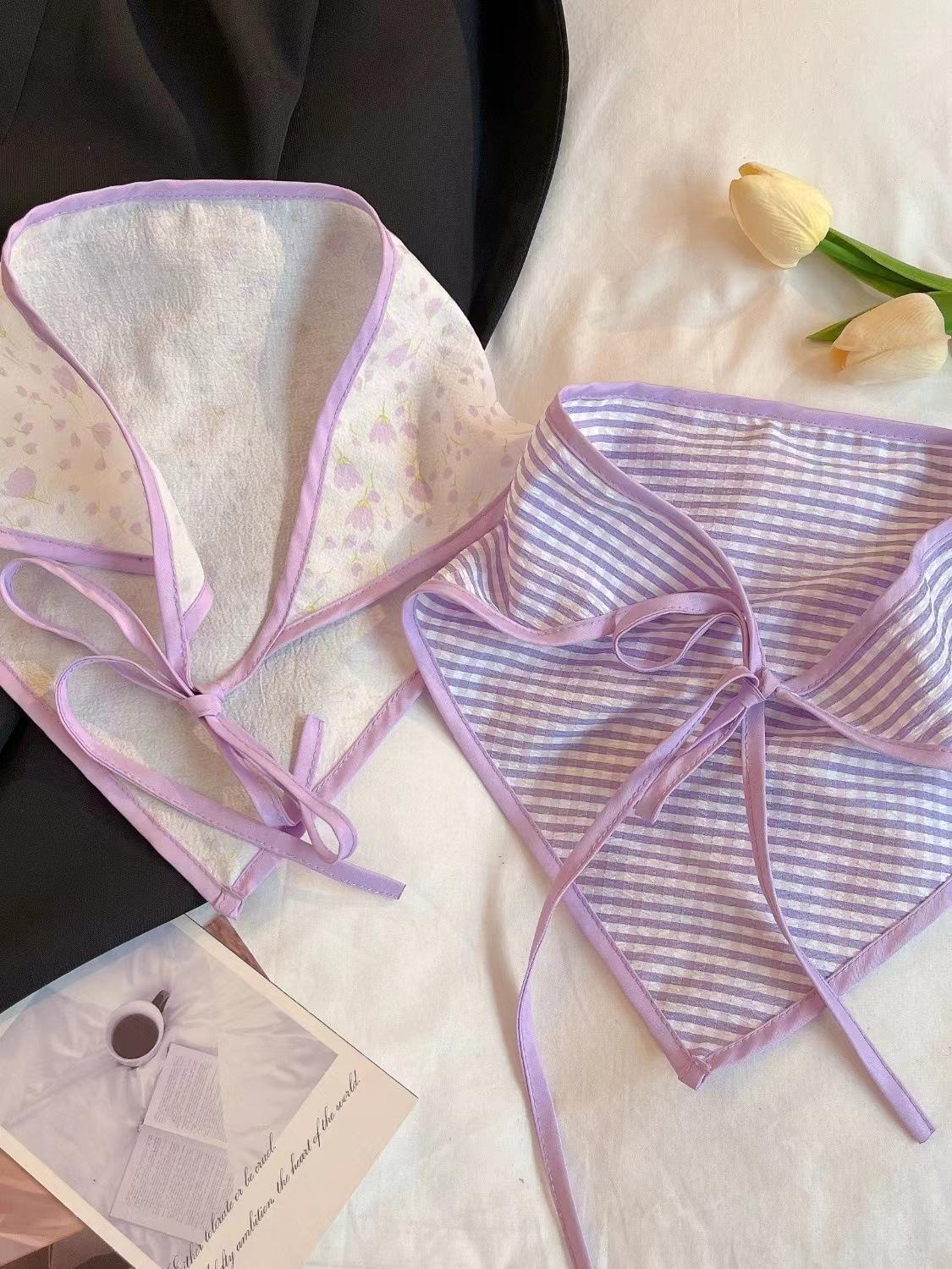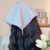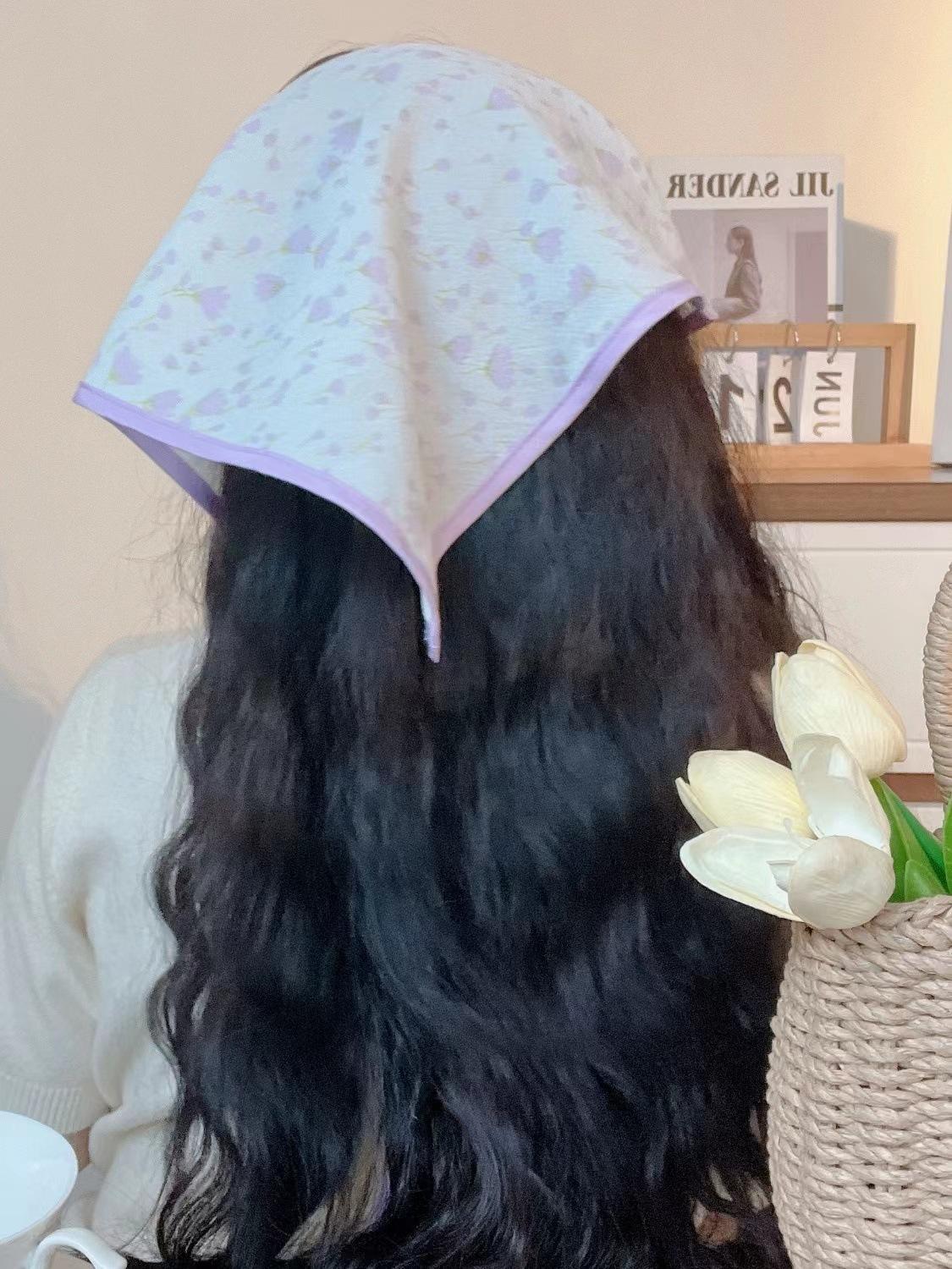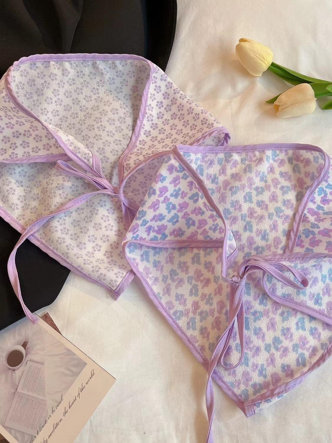 2025 Pañuelo Triangular Floral Pequeño Morado para Mujer Verano Más Fácil de Combinar Moda Casual Pañuelo de Seda Baotou Tocado para Foto de Celebridad de Internet
