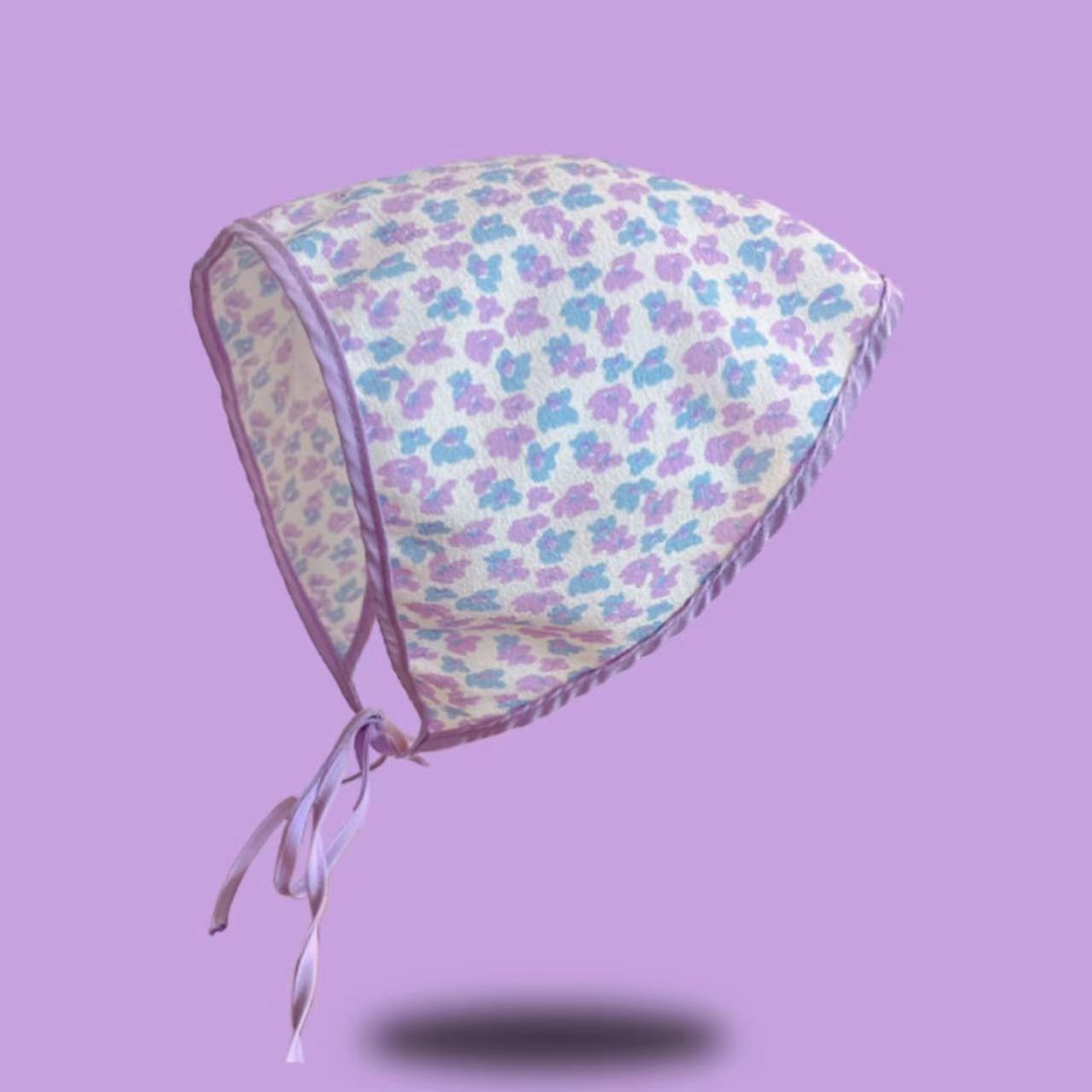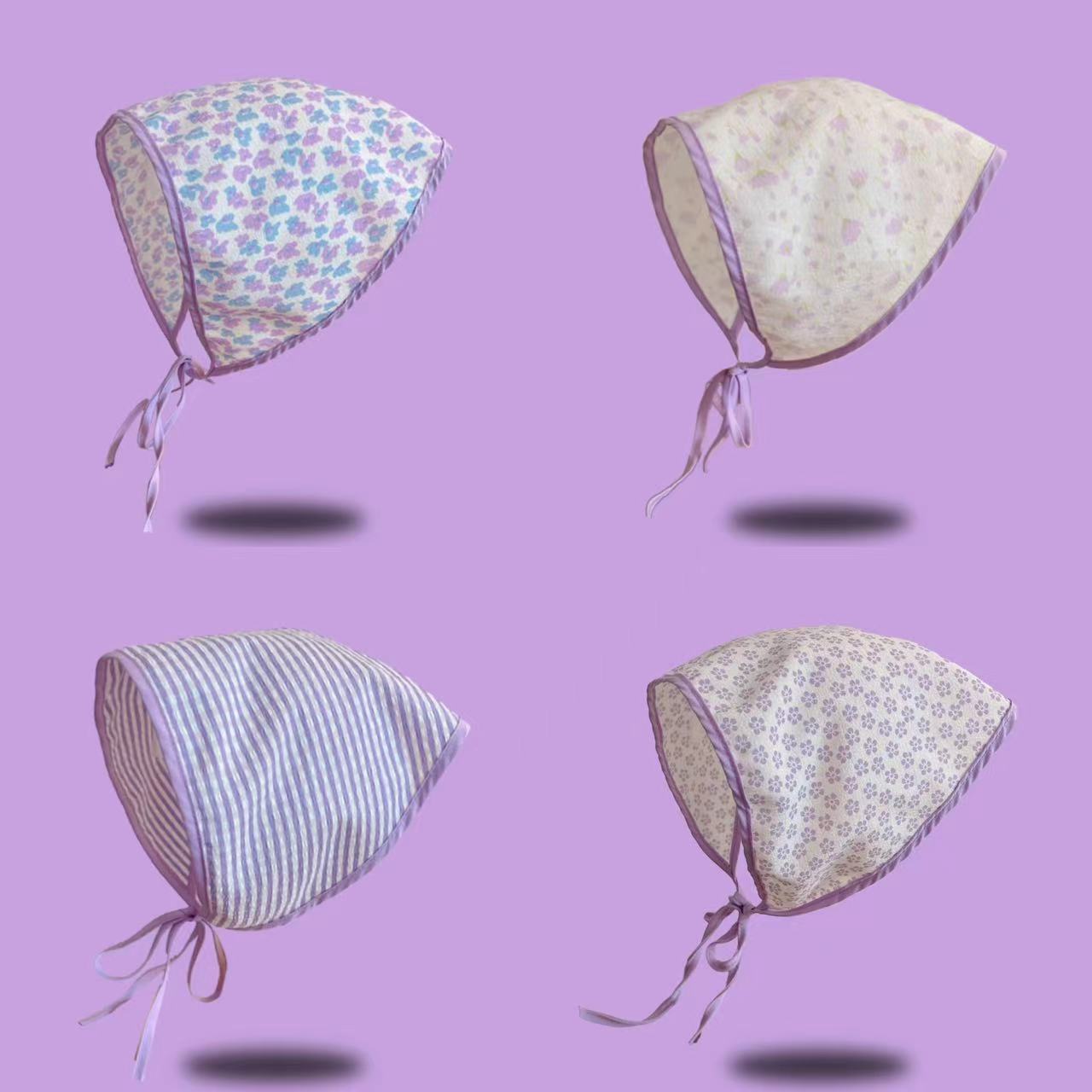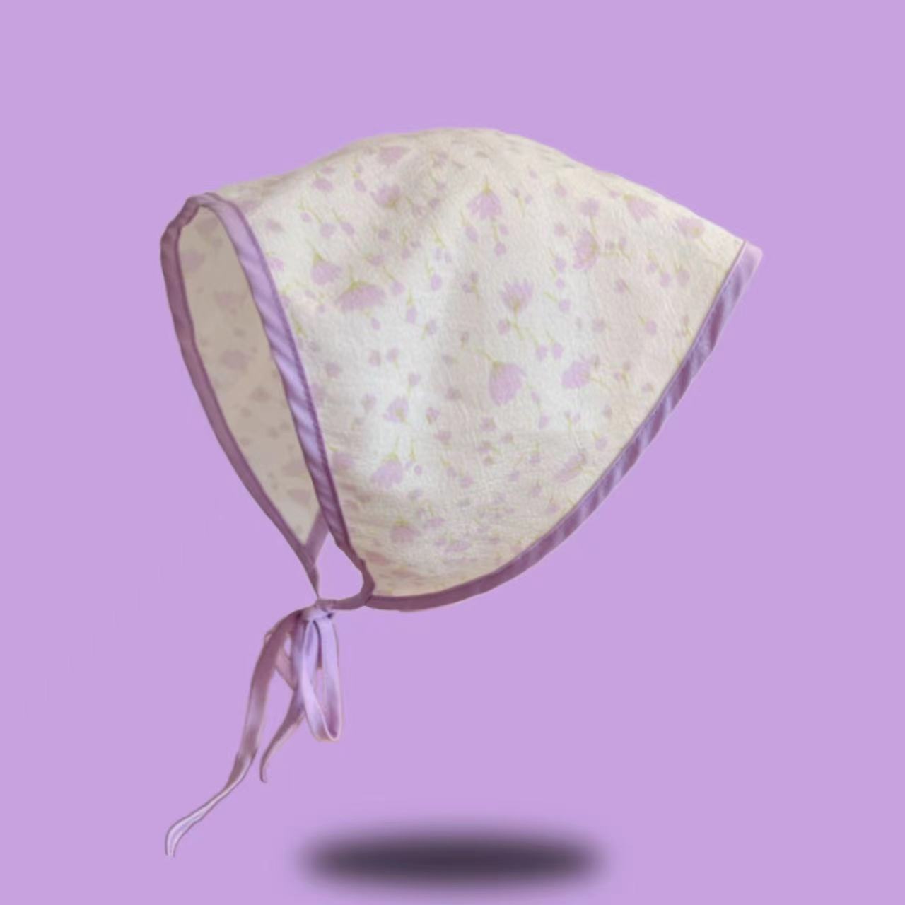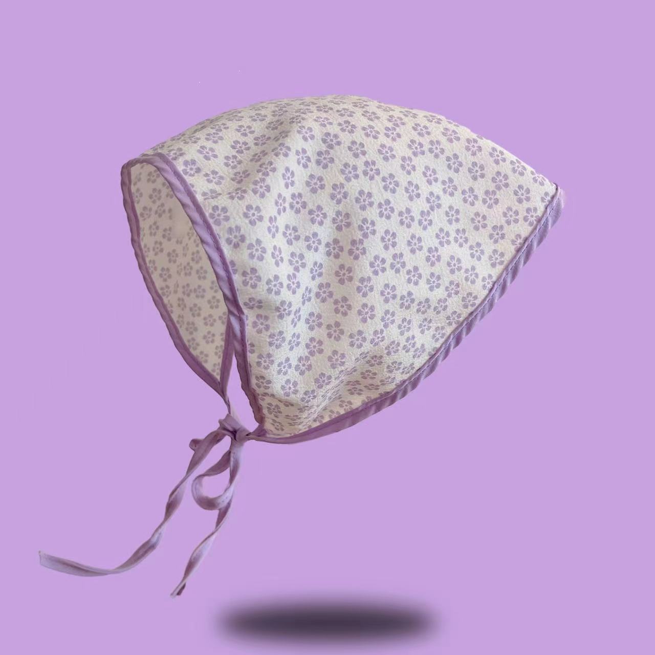 2025 Pañuelo Triangular Floral Pequeño Morado para Mujer Verano Más Fácil de Combinar Moda Casual Pañuelo de Seda Baotou Tocado para Foto de Celebridad de Internet