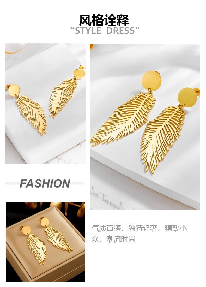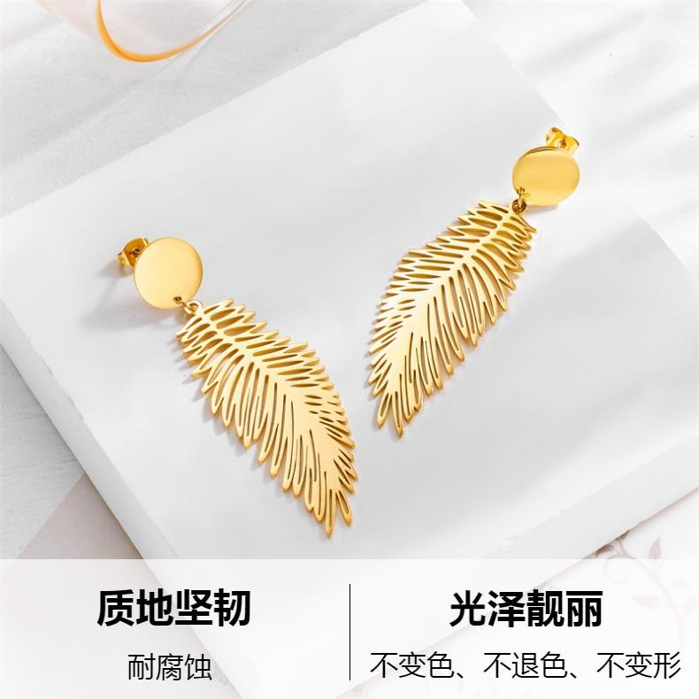 Pendientes personalizados creativos con colgante de plumas largas y exageradas de metal estilo frío retro simple de moda europea y americana