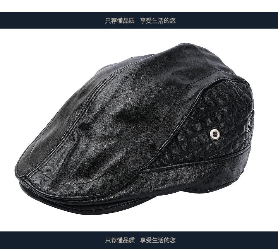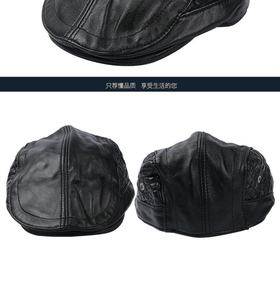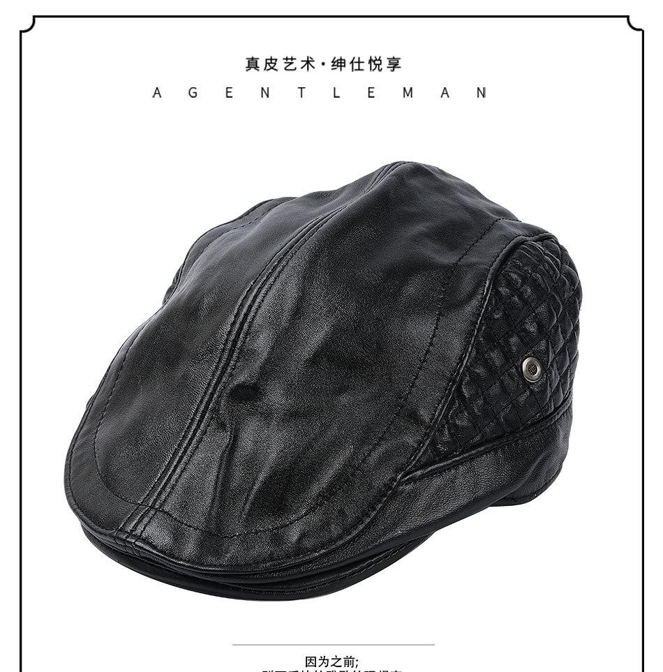 Sombrero de Cuero Gorra de Piel de Oveja para Hombre Gorra Moderna de Primavera y Otoño Delgada para Mediana Edad y Ancianos Gorra Avanzada Boina de Pintor para Anciano Estilo Coreano