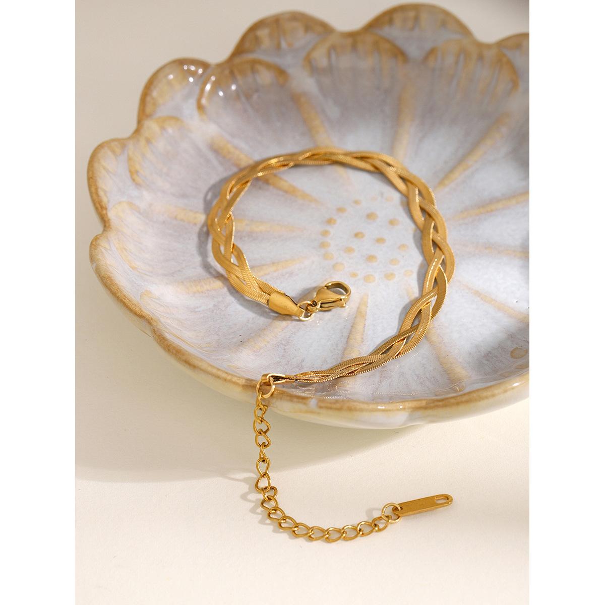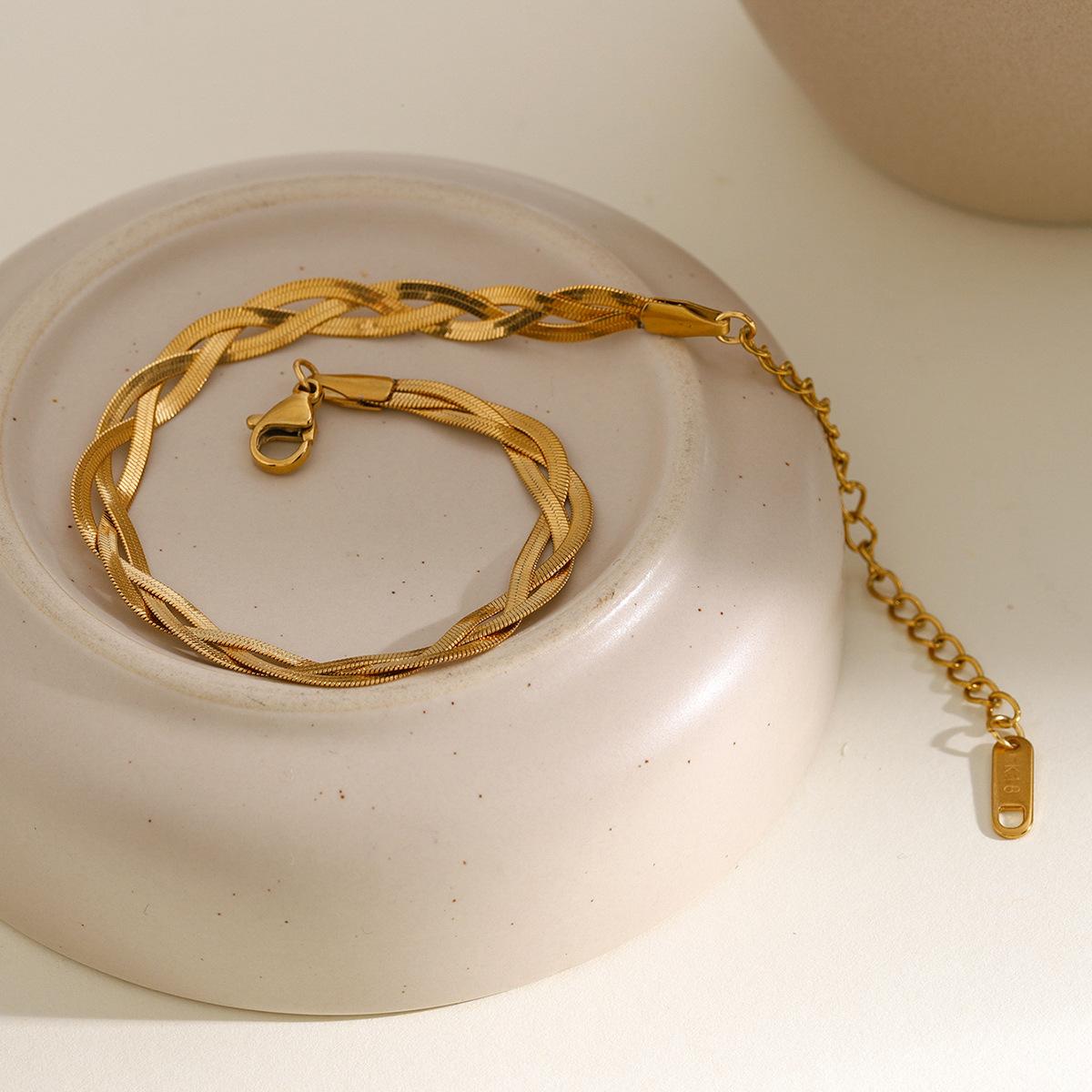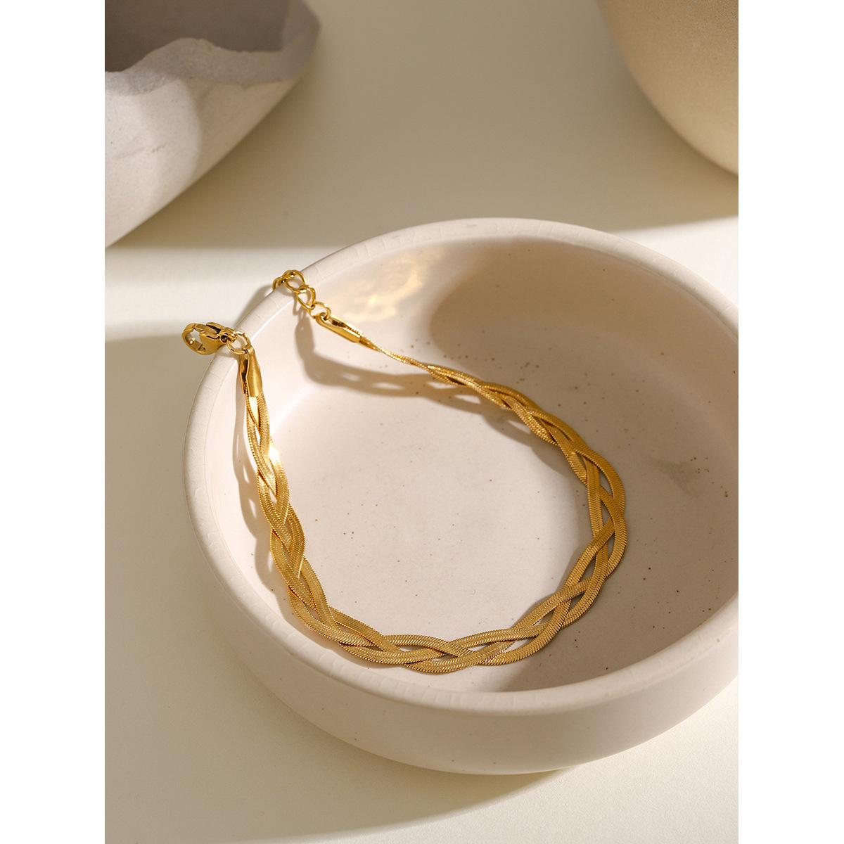 Compra Pulsera de cadena de hueso de serpiente trenzada de acero inoxidable chapado en oro de 18k, pulsera tejida de acero de titanio con viento de playa de verano europeo y americano para mujer al por mayor en Joom.pro