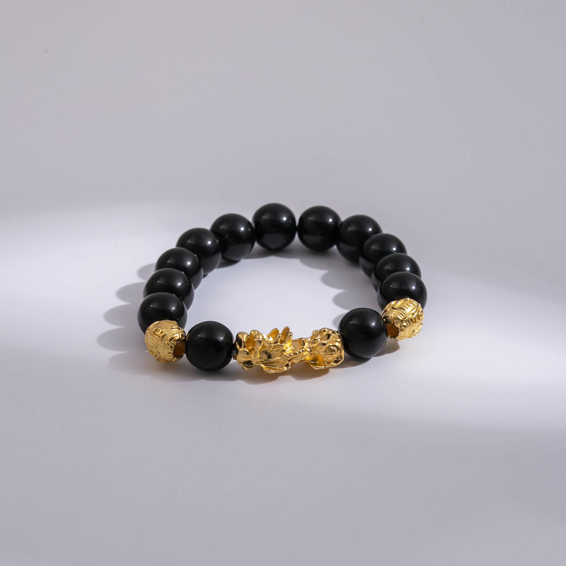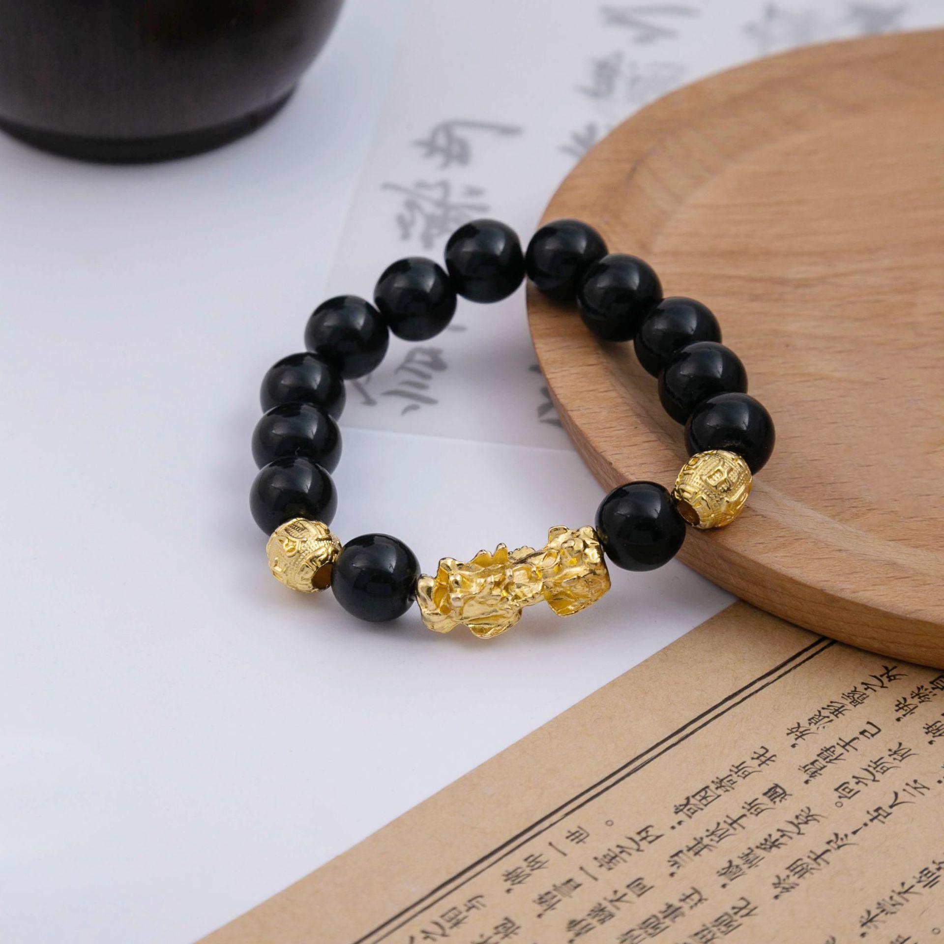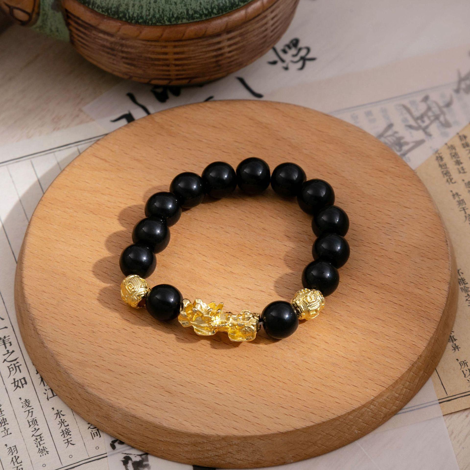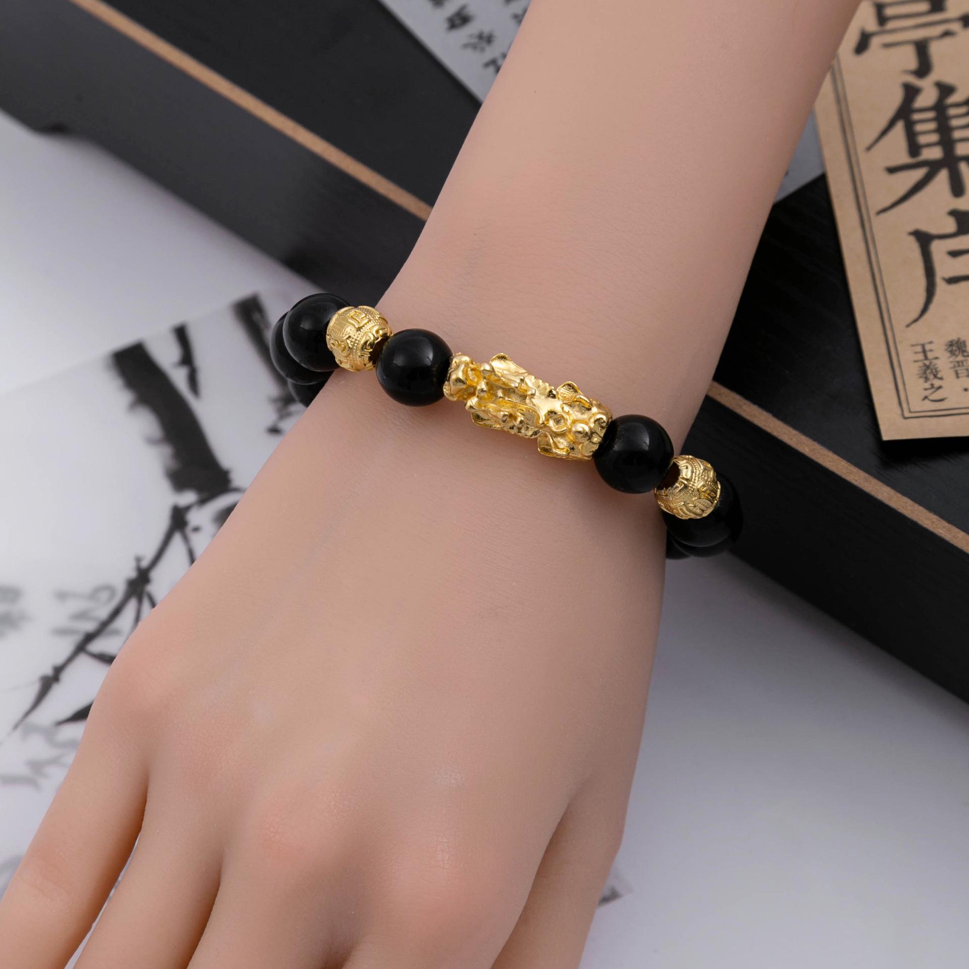 Pulsera Pixiu de Oro de Arena Vietnamita Transfronteriza Imitación Obsidiana Nuevo Estilo Chino Cuentas de la Suerte Regalo para Evento Pulsera al por Mayor