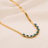 | Collar de acero inoxidable chapado en oro de 18 quilates para mujer, muy vendido en Europa y América, collar de acero de titanio con turquesa con incrustaciones de celebridades de Internet, cadena de clavícula resistente a la decoloración. |