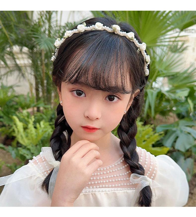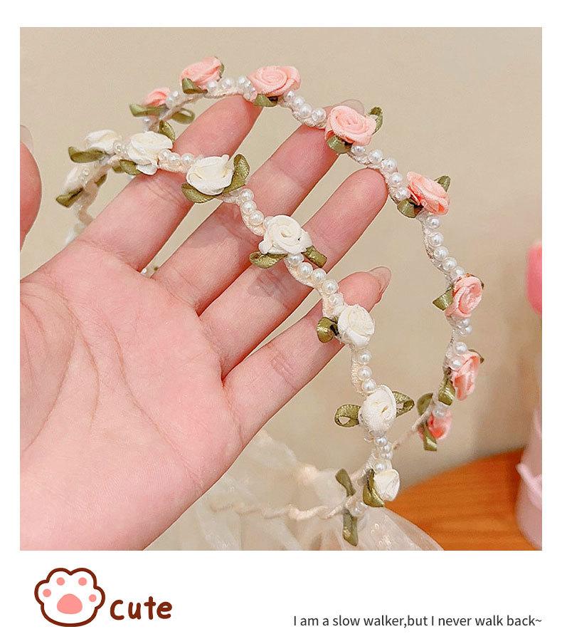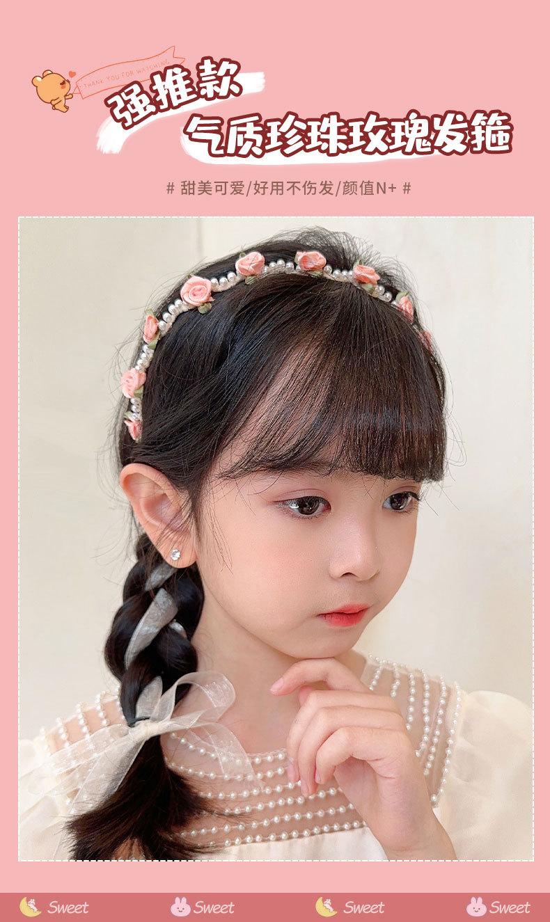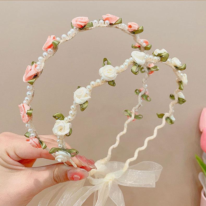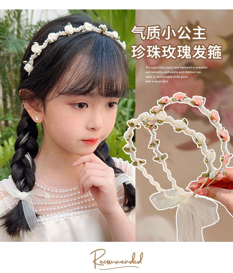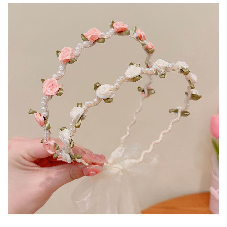 Diadema infantil para niñas, super hada perla rosa horquilla tocado, diadema trenzada con lazo para niña pequeña, accesorios para el cabello de princesa