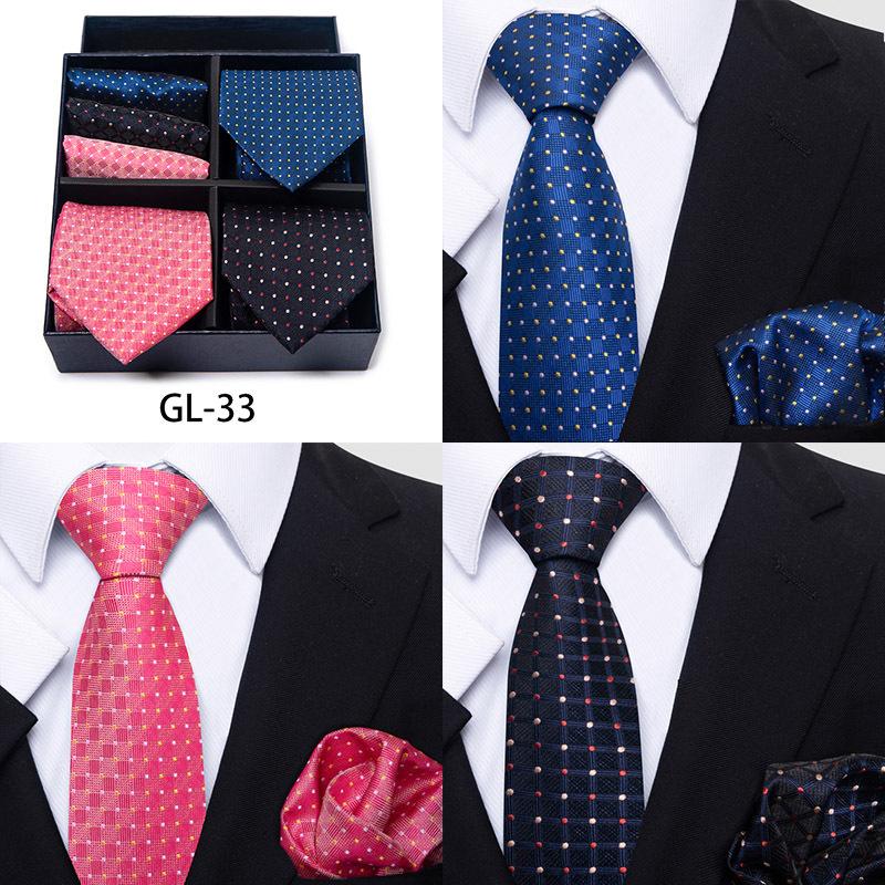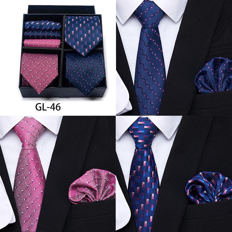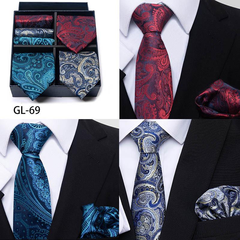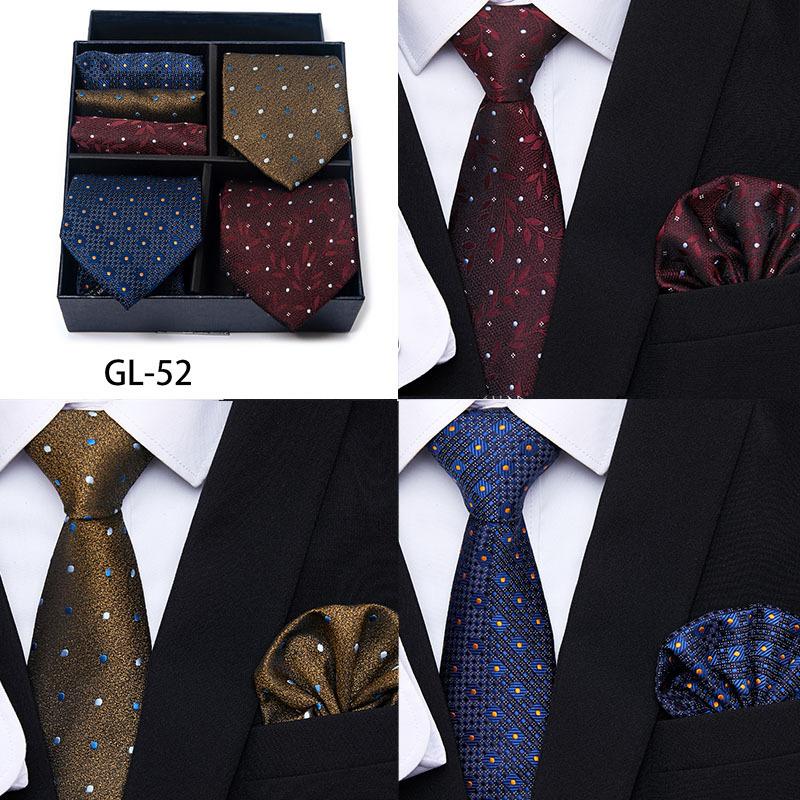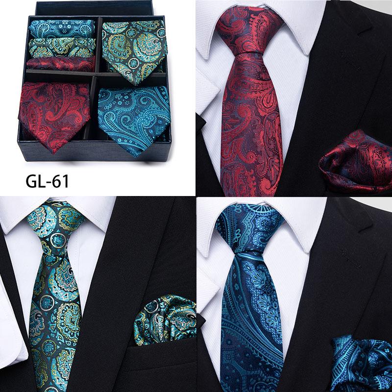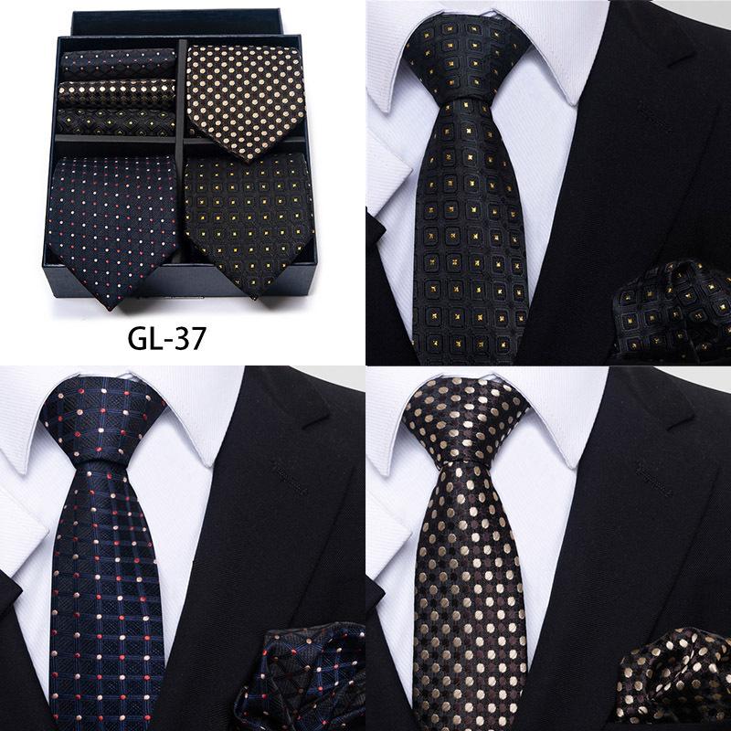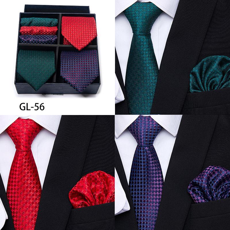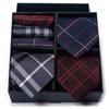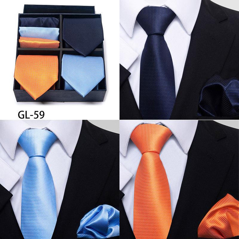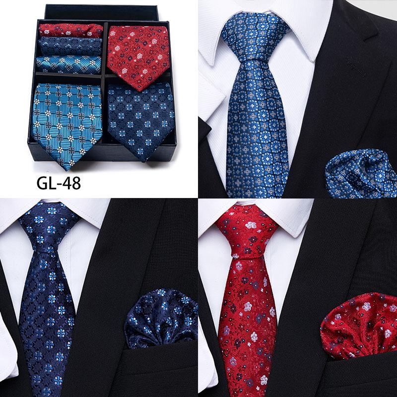 El juego incluye 3 corbatas, 3 bufandas y una caja de regalo azul de cuatro cuadrados.