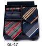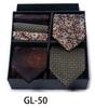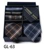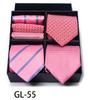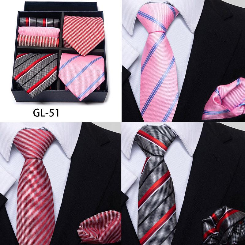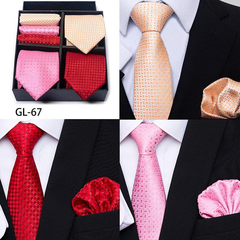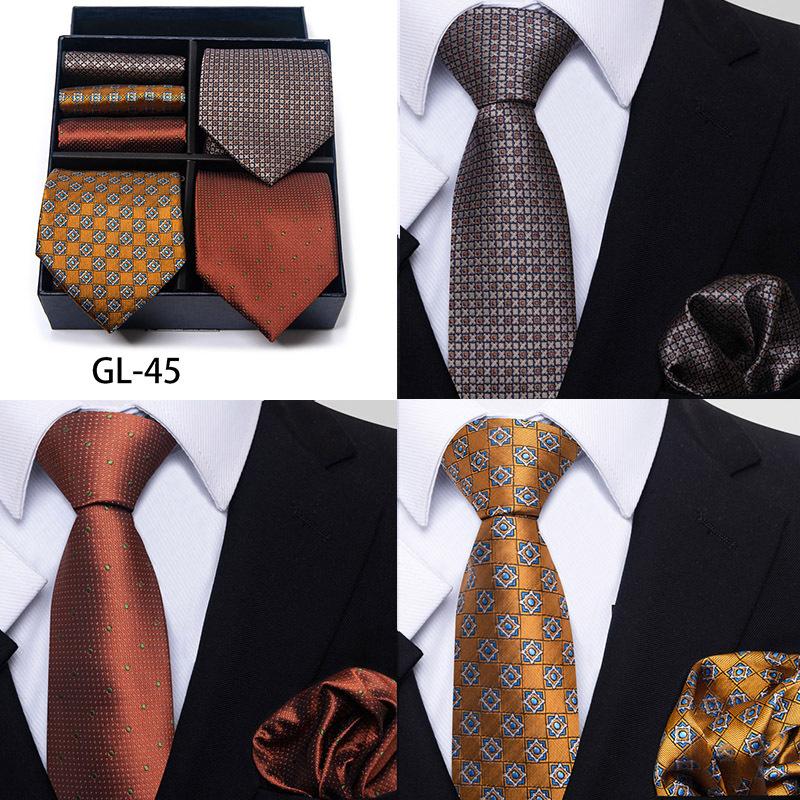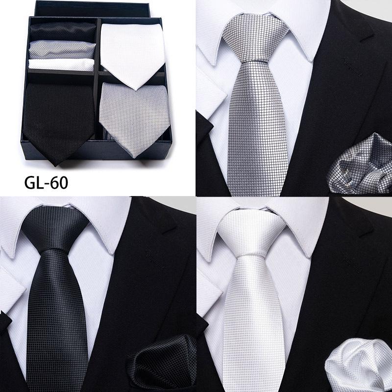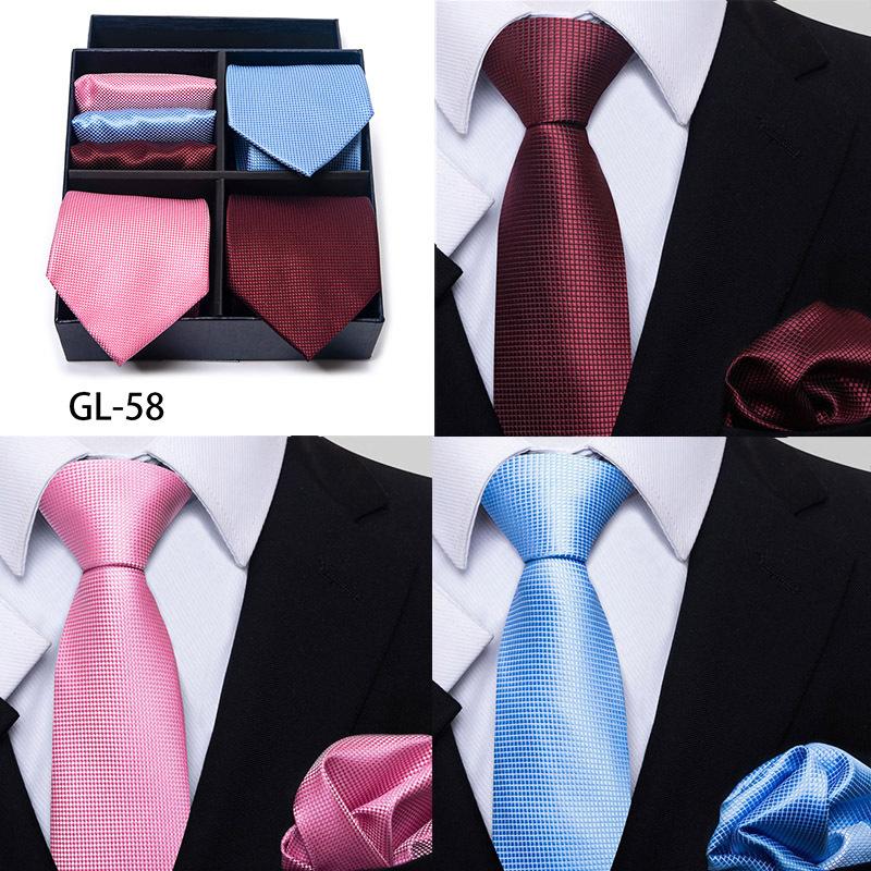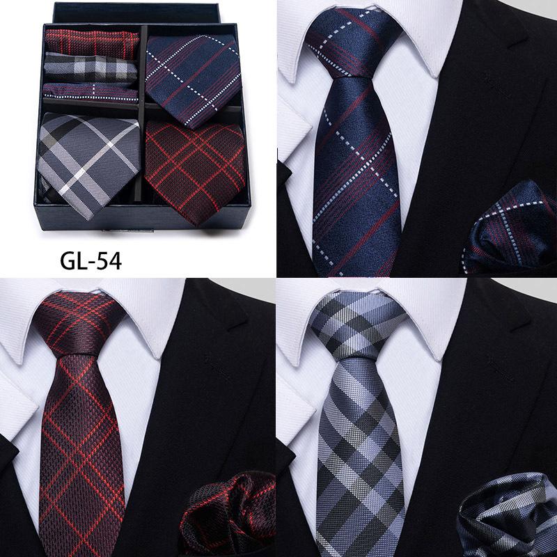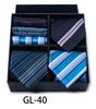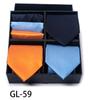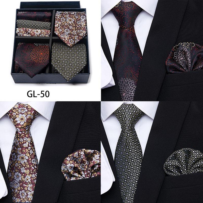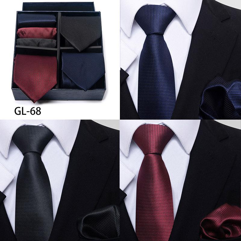El juego incluye 3 corbatas, 3 bufandas y una caja de regalo azul de cuatro cuadrados.