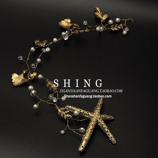 Diadema coreana para novia hecha a mano accesorios para el cabello de estrella de mar accesorios para el vestido de novia tocado hecho a mano para novia Directo de fábrica