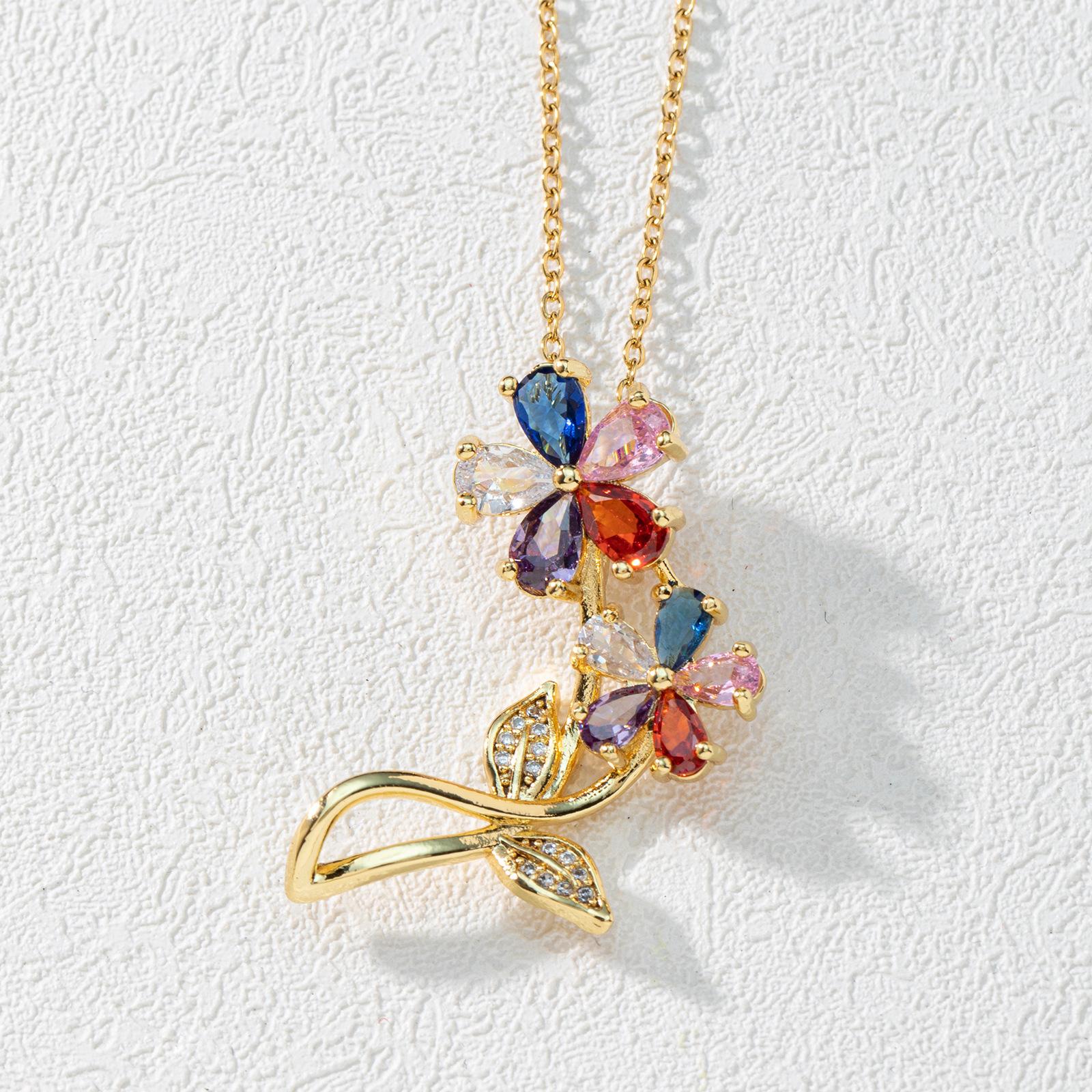 Collar con colgante de flor de circón con personalidad de nicho retro clásico transfronterizo de moda europea y americana, cadena de suéter versátil para otoño e invierno para mujer