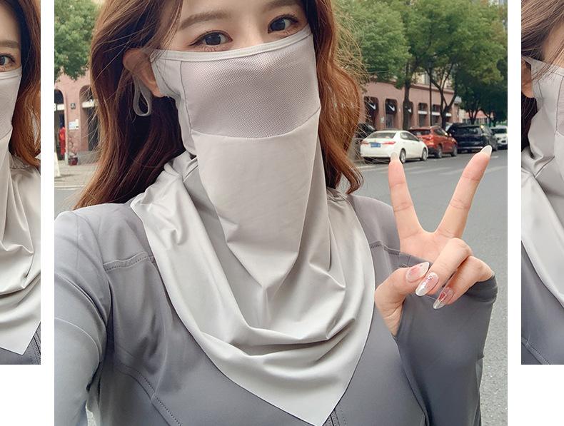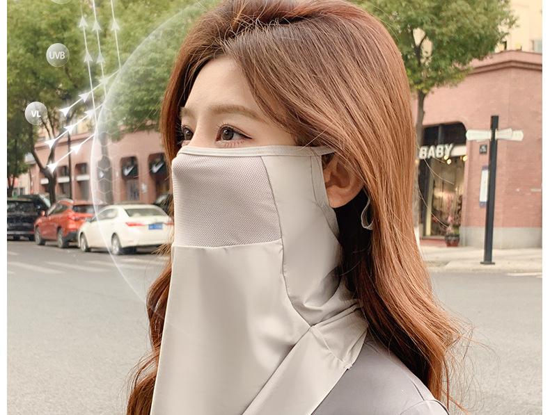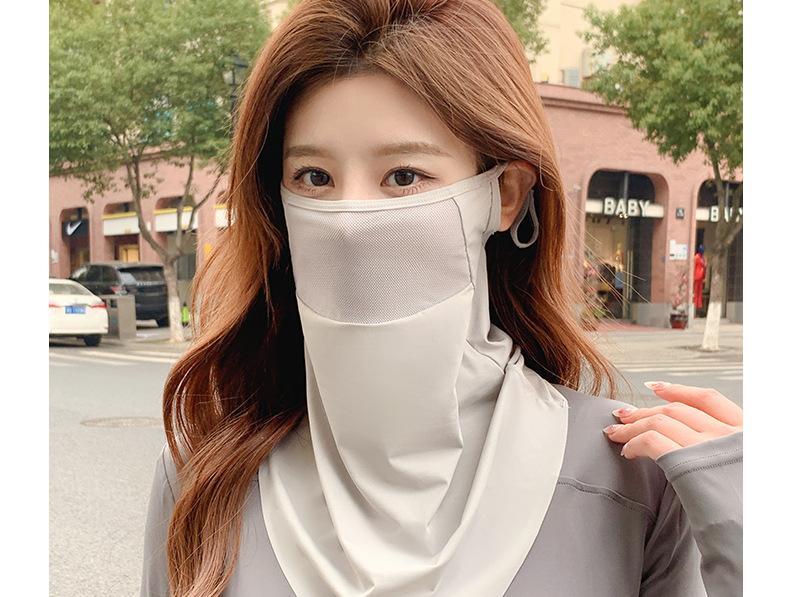 Mascarilla de protección solar para mujer, para exteriores, anti-UV, de media cara, de seda helada, para el cuello, transpirable, fina, para verano