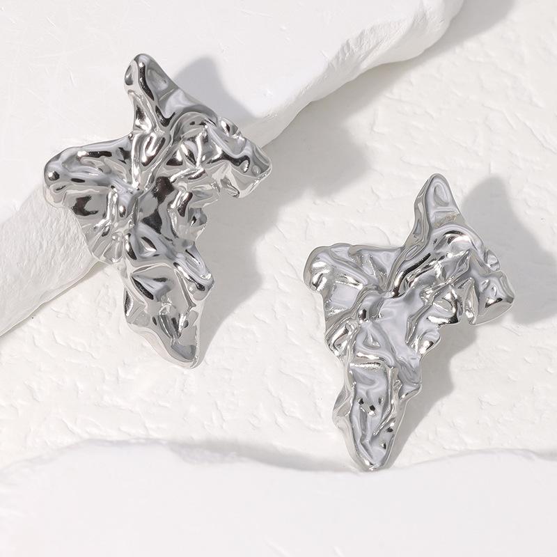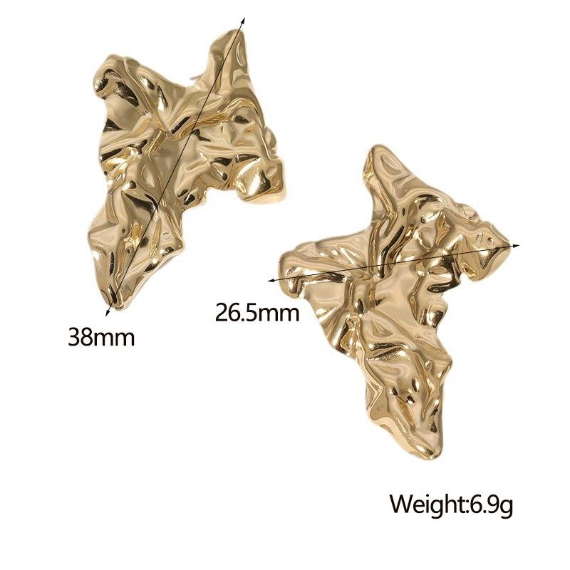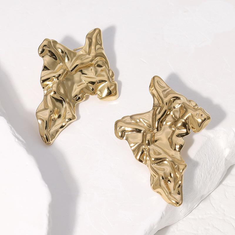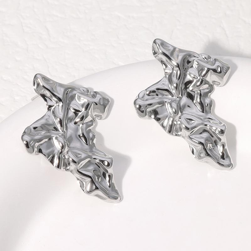 Pendientes de acero inoxidable de moda de estilo europeo y americano, pendientes irregulares de estilo frío, pendientes de acero de titanio plisados con nicho de personalidad para mujer