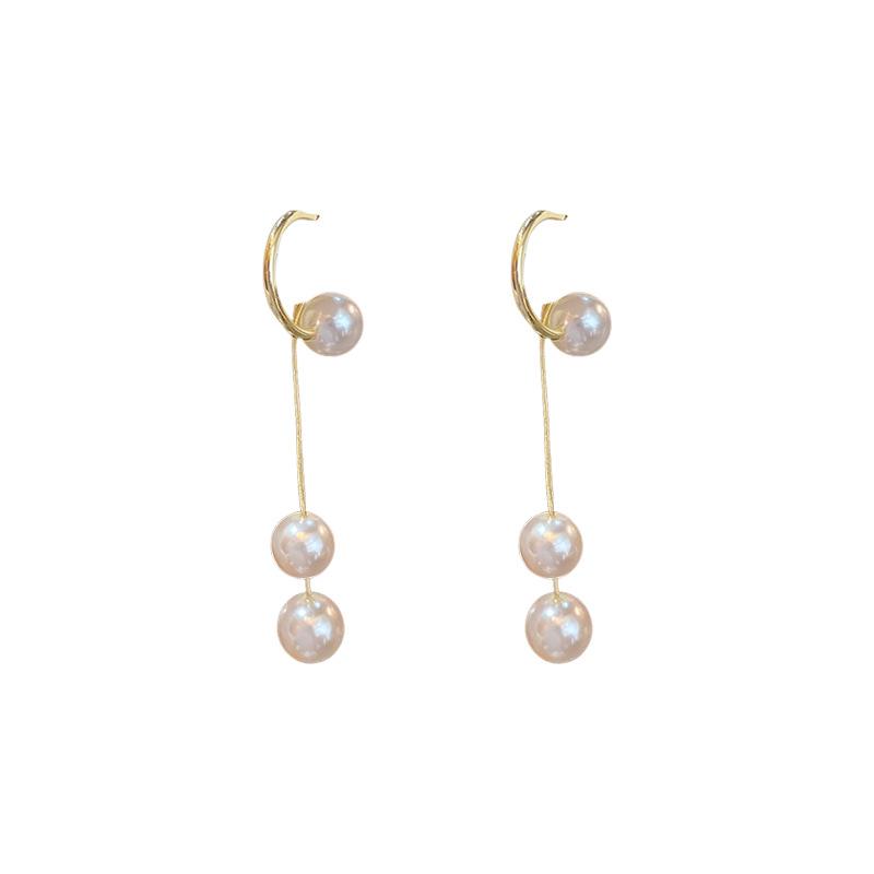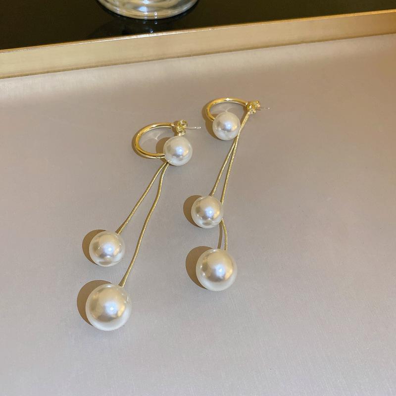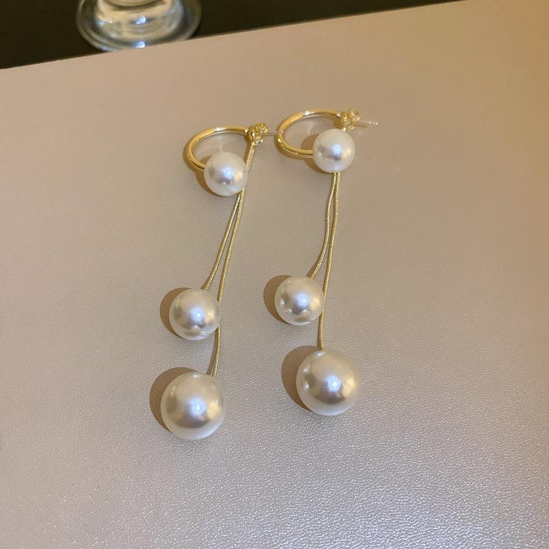 Compra Pendientes largos de perlas con borlas para mujer, aretes de diseño pequeño de verano, nuevos aretes de lujo de alta gama a la moda. al por mayor en Joom.pro