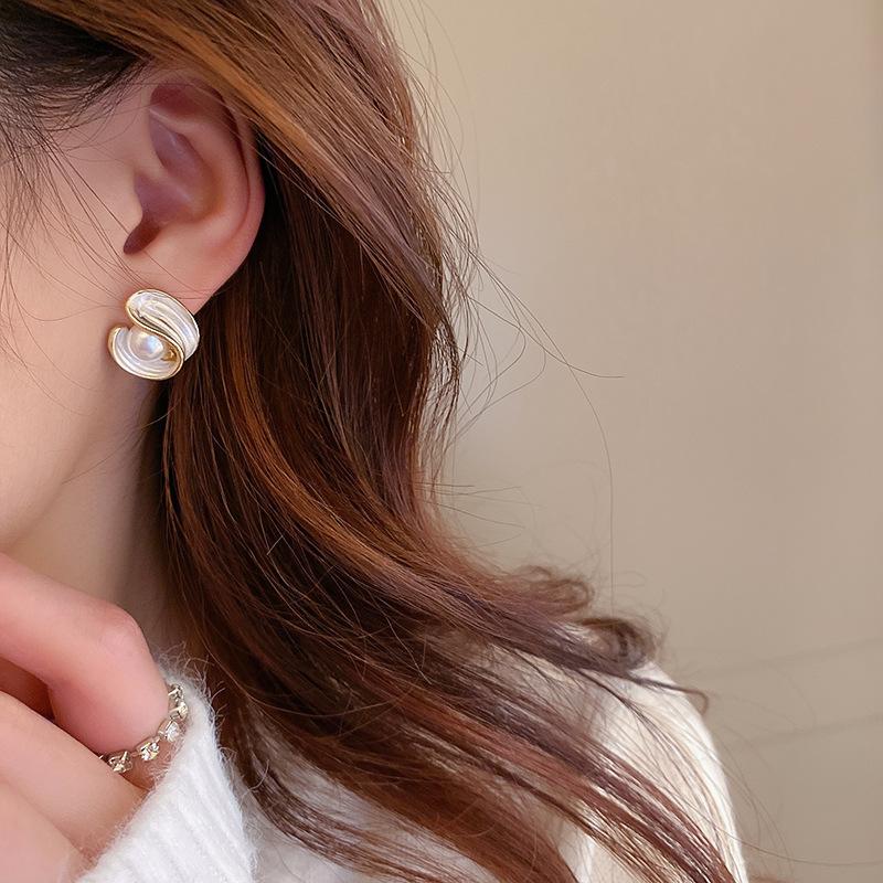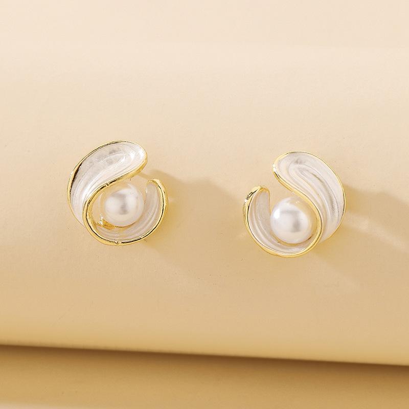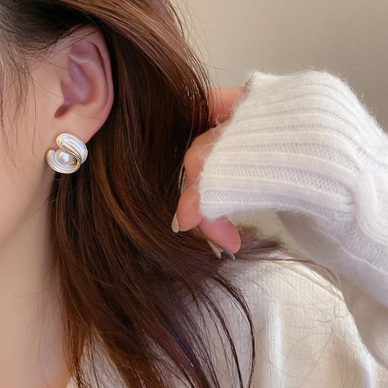 Pendientes geométricos simples retro de aguja de plata con perla de imitación, para mujer, moda europea y americana ins, temperamento de alta gama, nicho, venta al por mayor