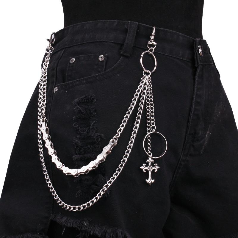 Cadena de cintura con colgante de cruz de metal estilo hip-hop personalizado para pantalones punk de moda transfronteriza europea y americana para hombre.