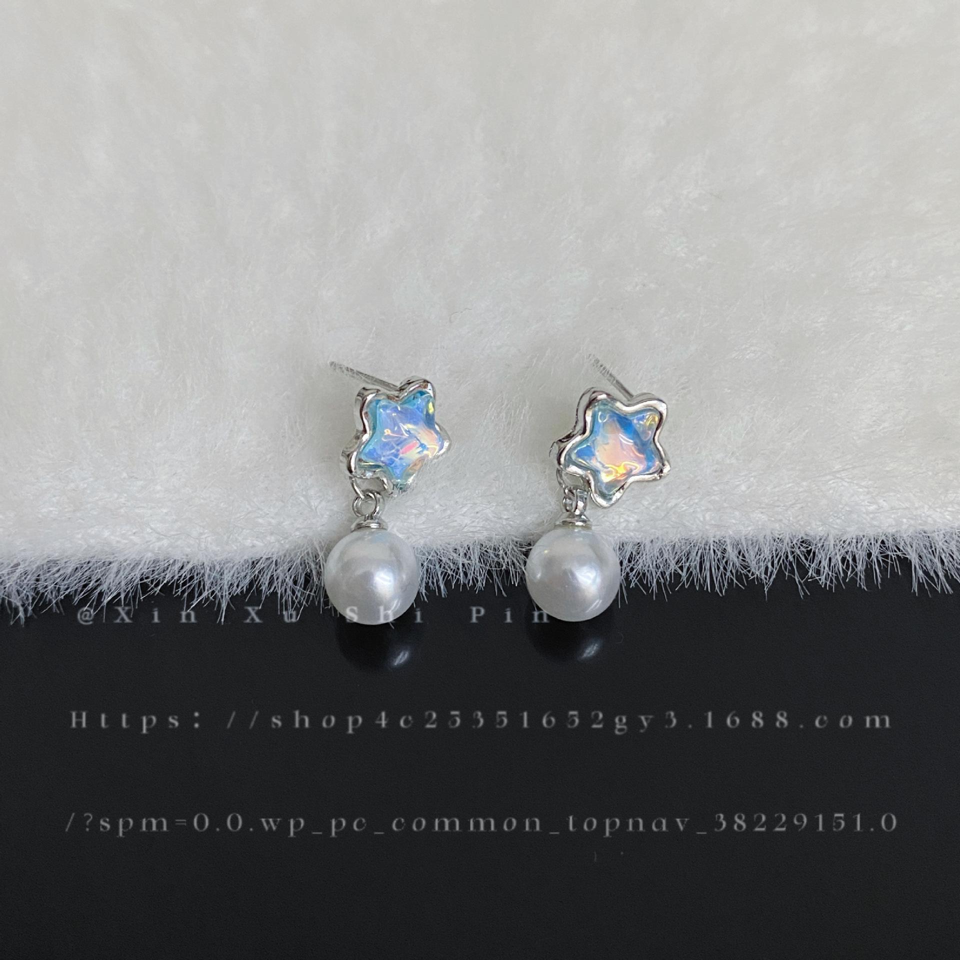 Pendientes de perla de estrella azul para mujer, ligeros, de lujo, de diseño de alta calidad, de moda, con un temperamento fresco y nicho.