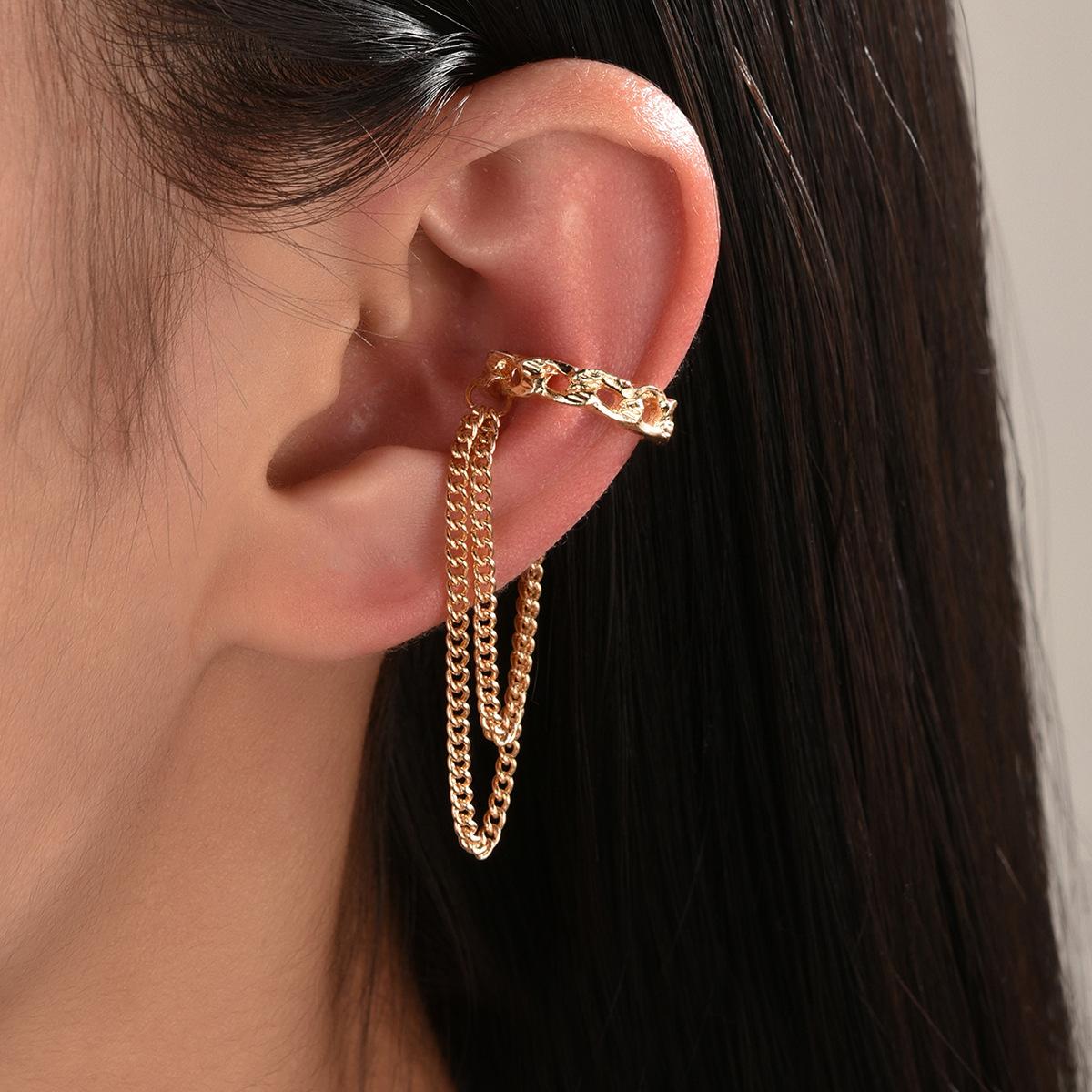Nuevo Clip para Oreja de Cadena Calada Simple y Personalizado para Oreja No Perforada Diseño Nicho Joyería para Oreja para Mujer