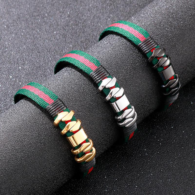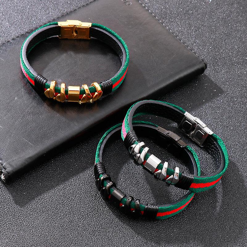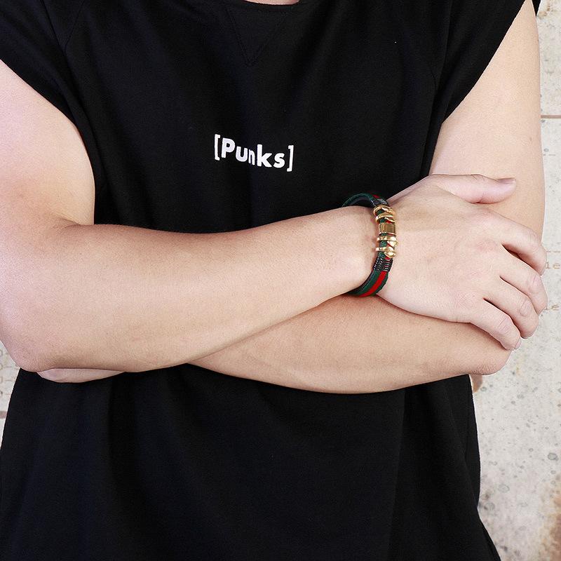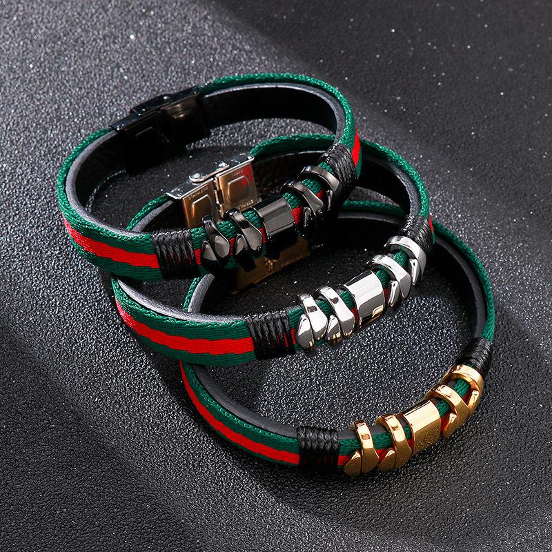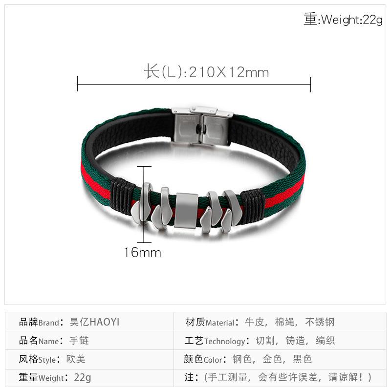 Pulsera de acero inoxidable con personalidad de doble capa de piel de vaca tejida con cuerda de algodón para hombre, hecha a mano, de acero de titanio y estilo europeo y americano