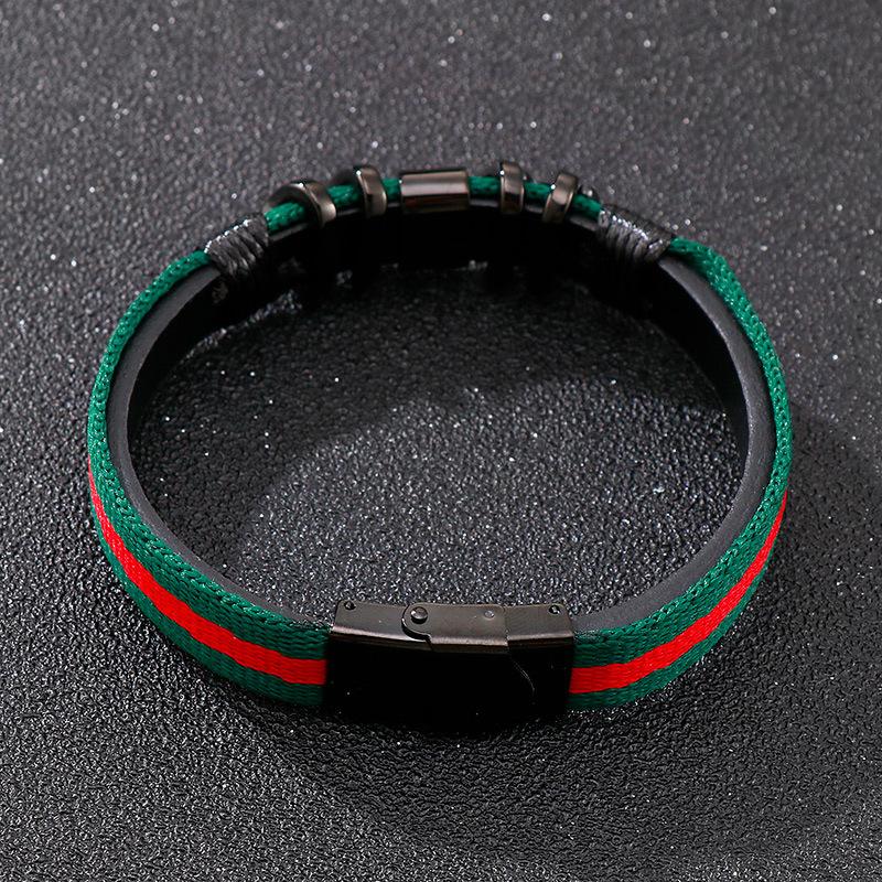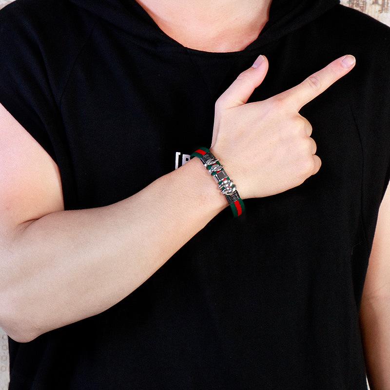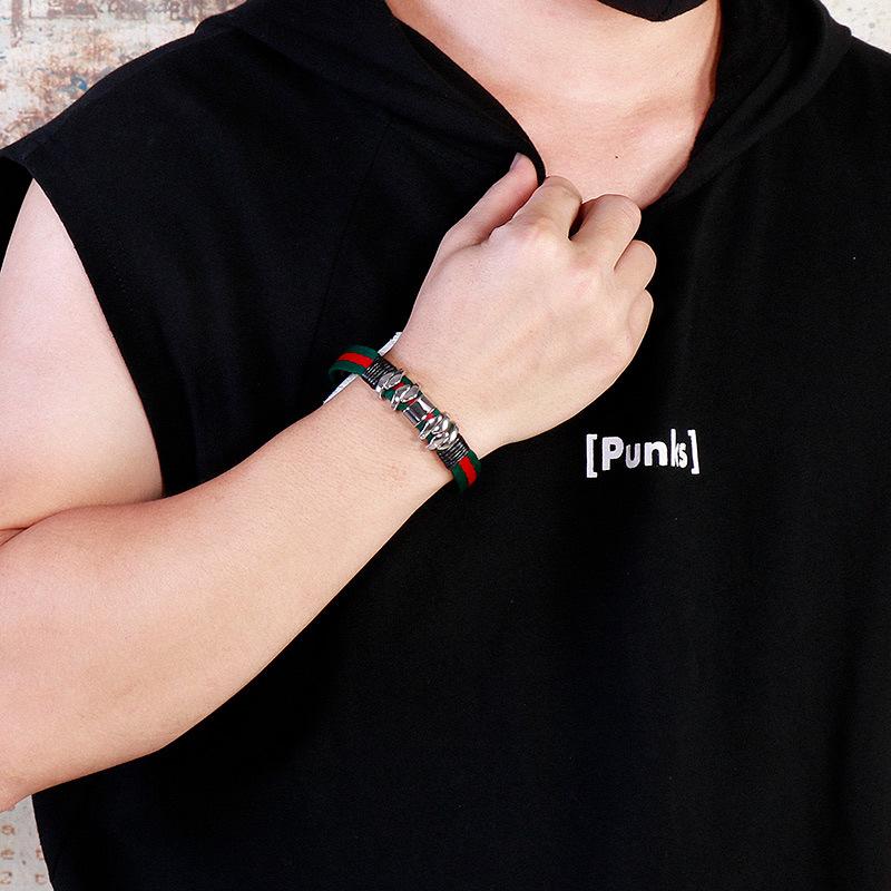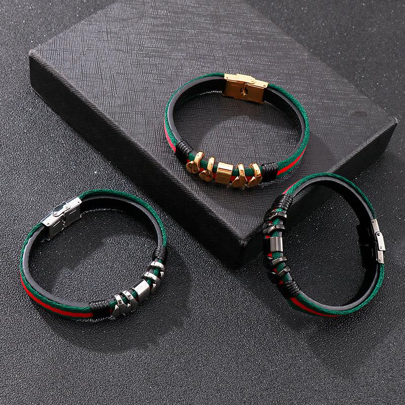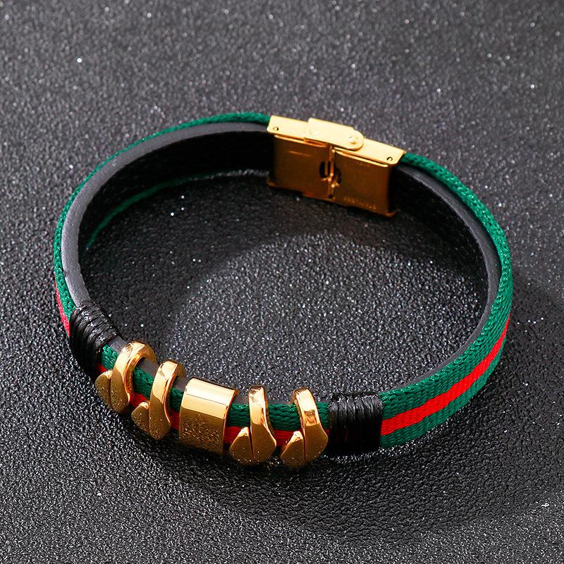 Pulsera de acero inoxidable con personalidad de doble capa de piel de vaca tejida con cuerda de algodón para hombre, hecha a mano, de acero de titanio y estilo europeo y americano