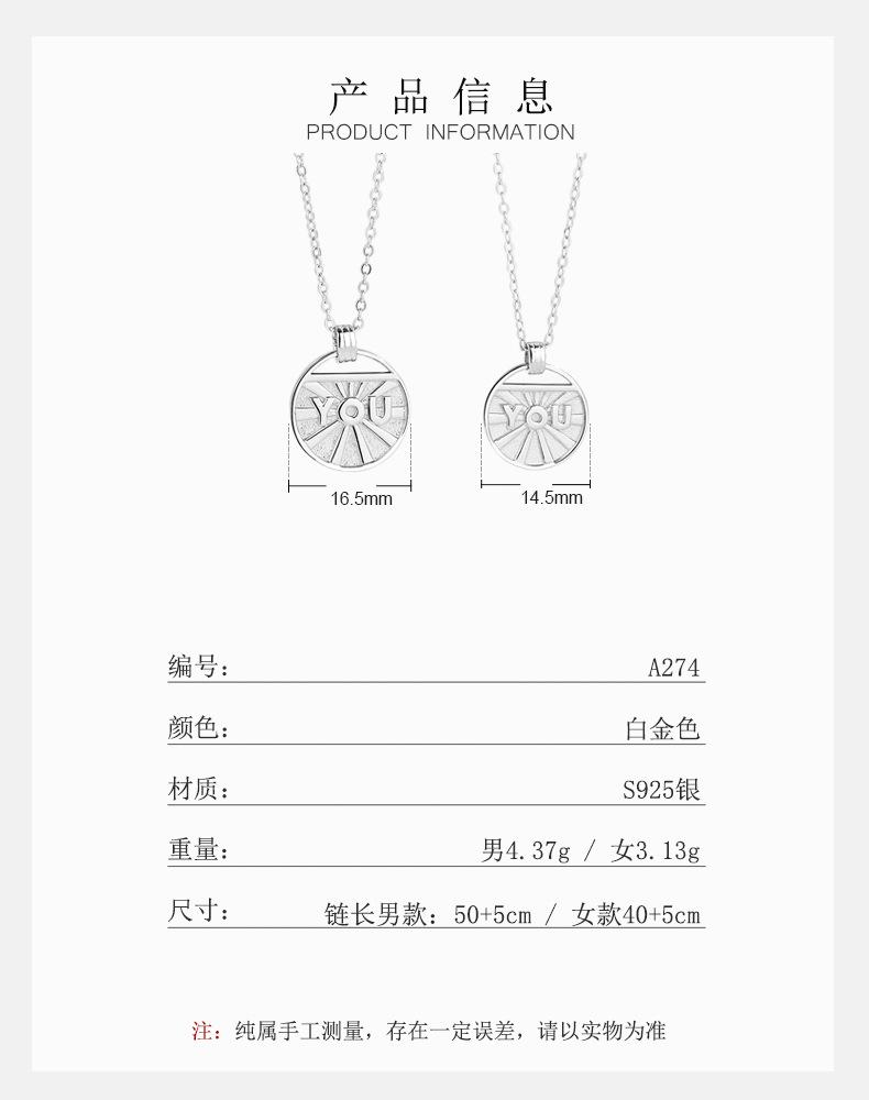 Compra Collar de pareja con letras de plata esterlina S925 para hombres y mujeres, estilo coreano, diseño de nicho, cadena de clavícula redonda, regalo conmemorativo de moda al por mayor en Joom.pro