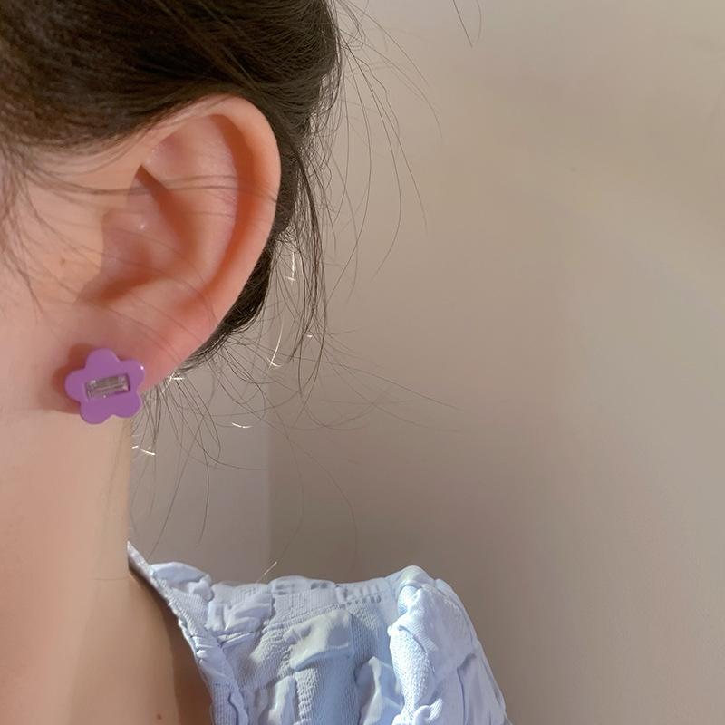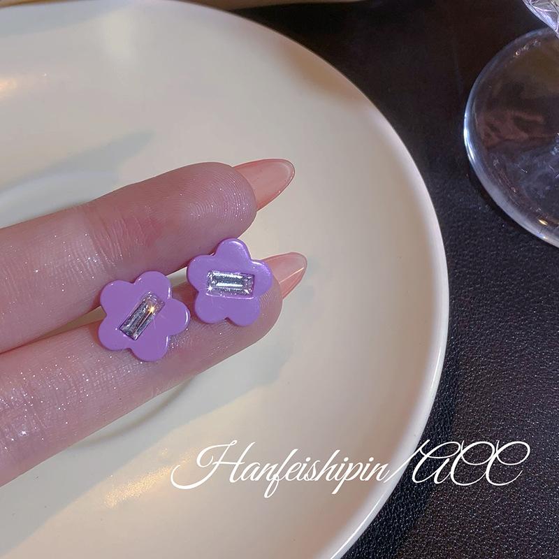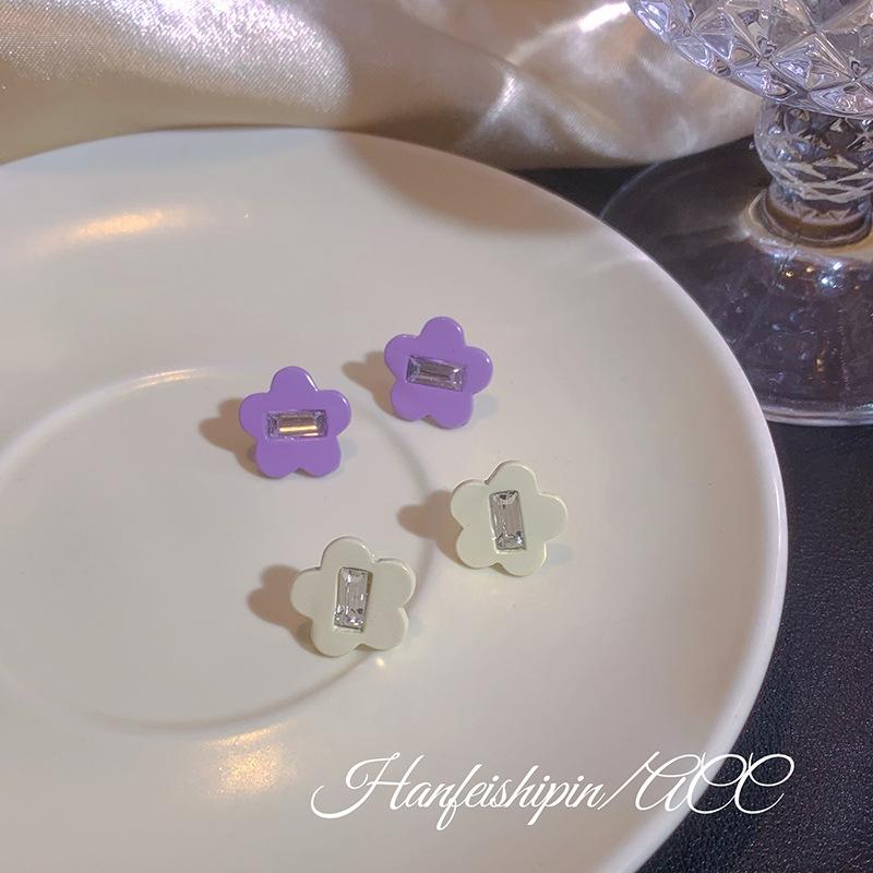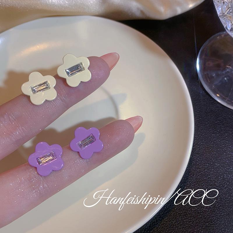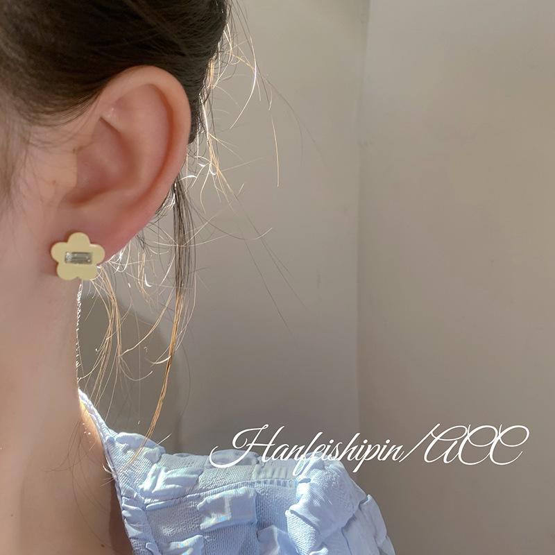 Pendientes sencillos de flor de diamante pequeño en plata 925, estilo coreano, bonitos, dulces, elegantes y frescos para mujer.