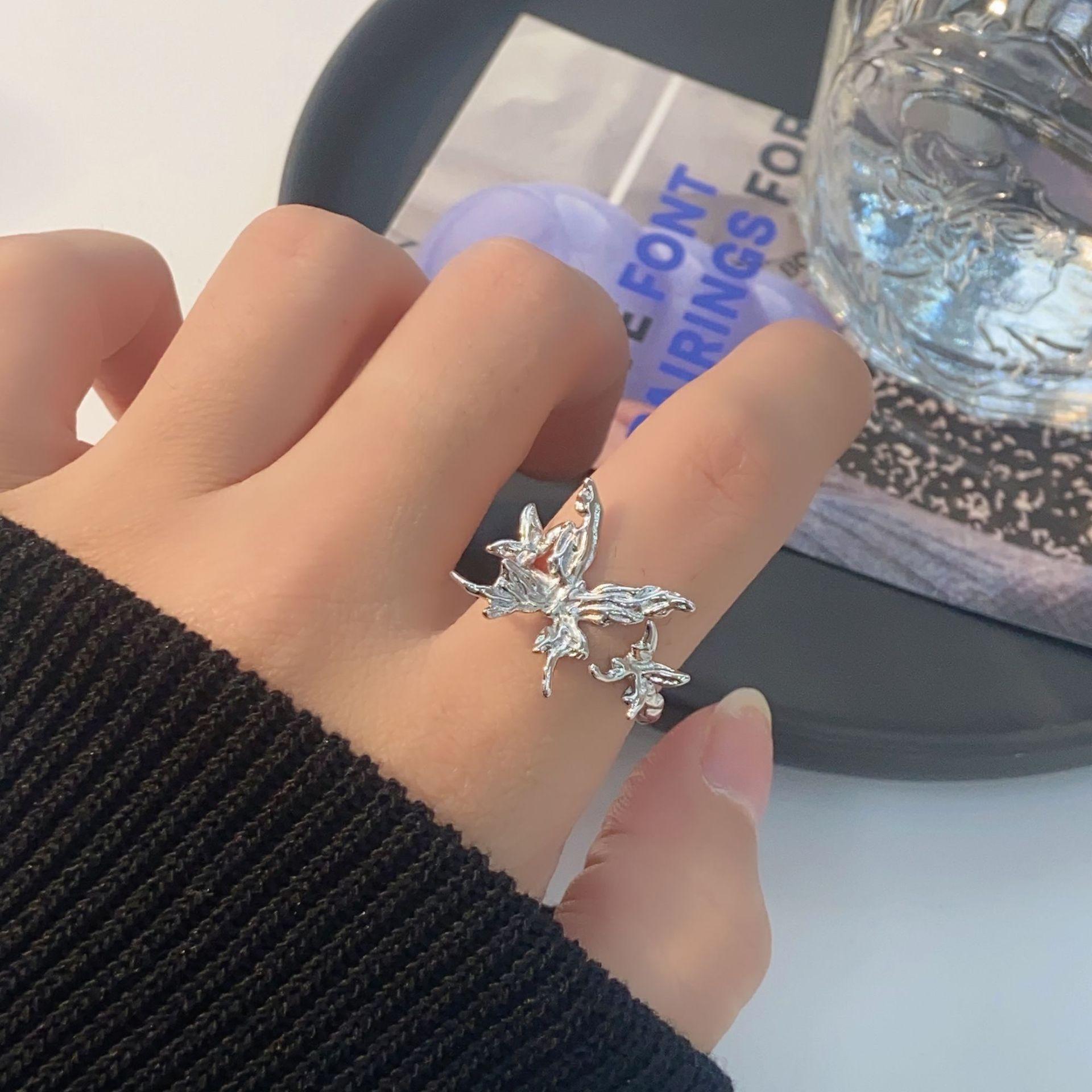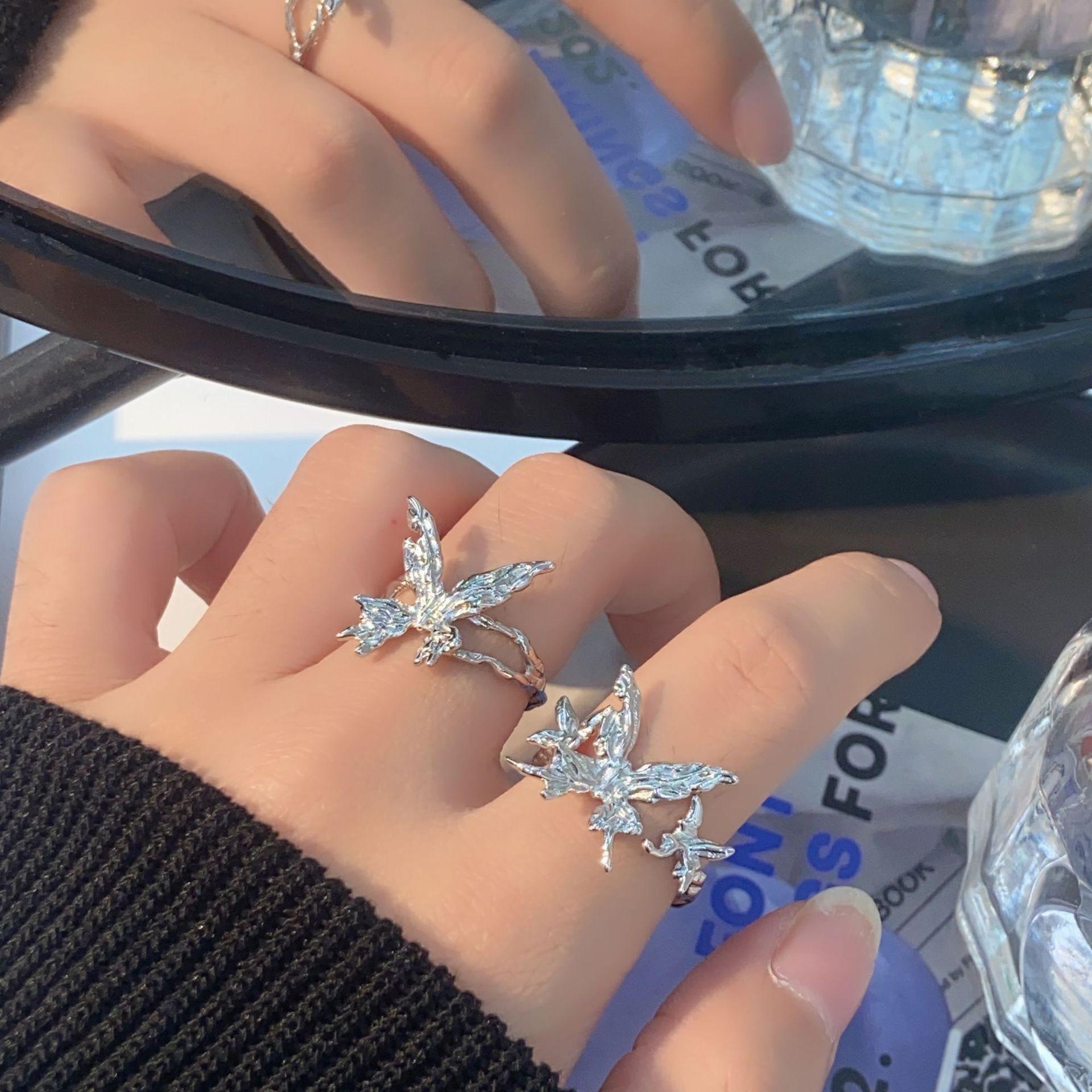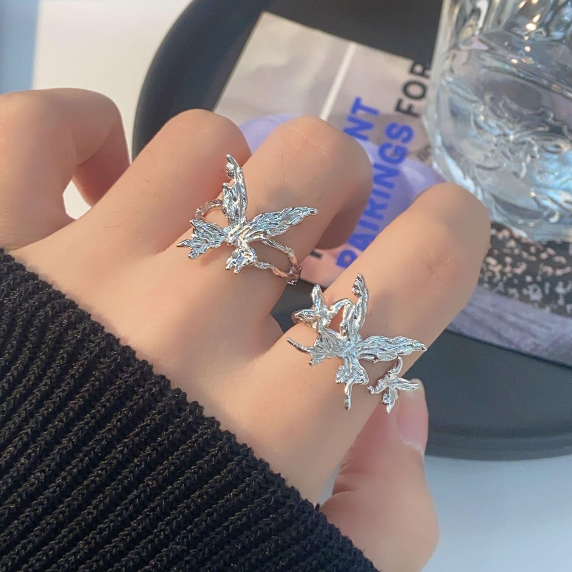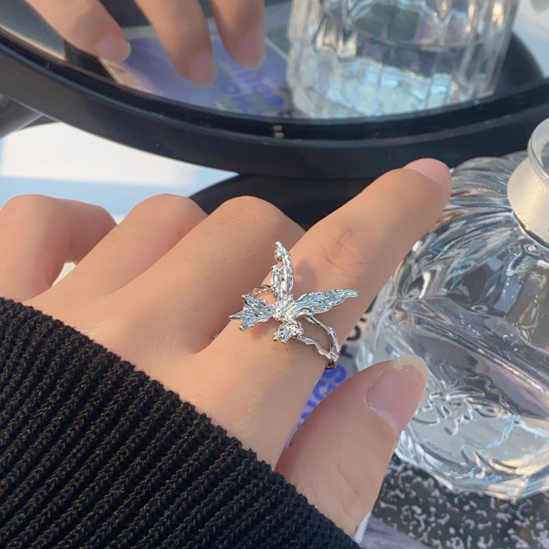 Anillo abierto de mariposa tridimensional con diseño personalizado, anillo ajustable de temperamento moderno para mujer, anillo de dedo de alta gama que combina con todo.