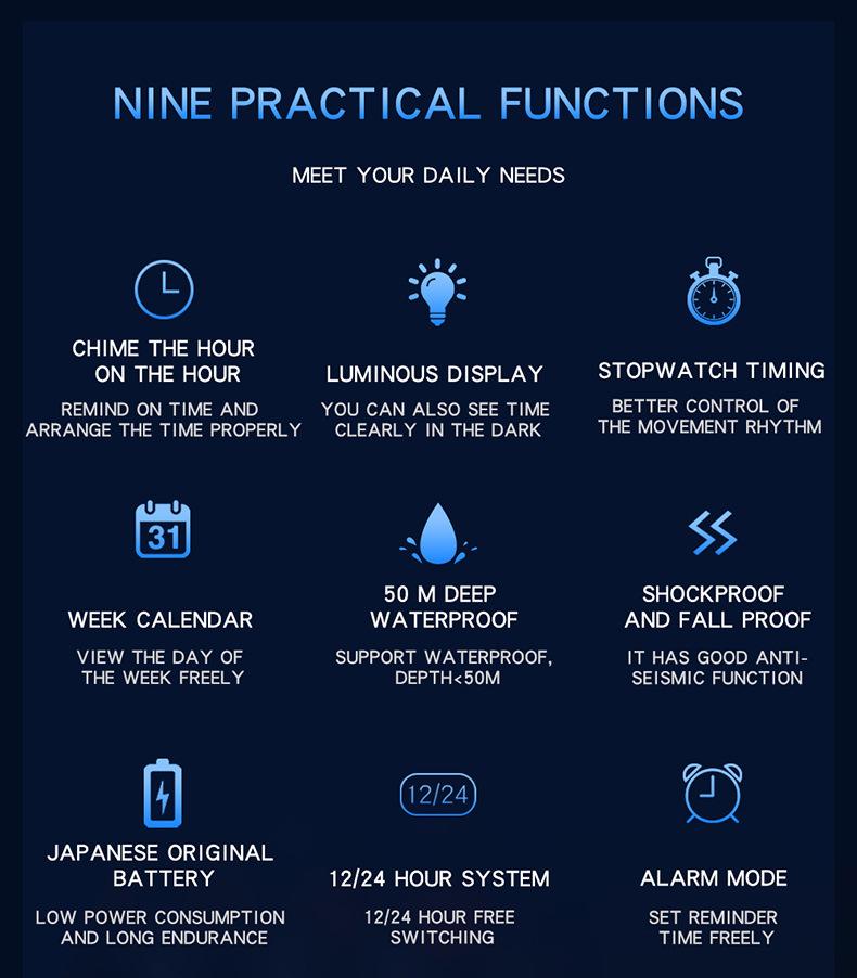 2. ¡Cada modelo es resistente al agua para nadar de 30 a 50 metros! ¡Pero no es apto para baños en agua caliente!