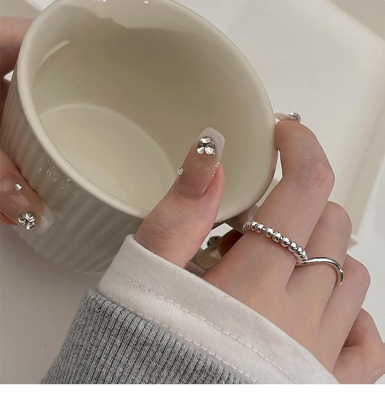 Anillo de cuentas de plata esterlina s925 para mujer, estilo minimalista, estilo frío, con cuentas apiladas de estilo Cyber Celebrity, anillo abierto.