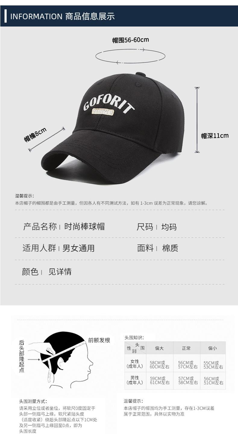 Gorra de béisbol coreana de algodón con bordado de letras, estilo coreano, de cabeza grande, rígida y moderna, informal, combinable con todo, para hombre.
