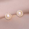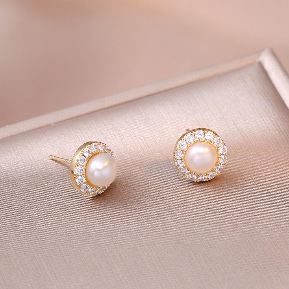 Compra Pendientes de plata con forma de aguja para mujer, estilo vintage, con perlas naturales de agua dulce, con diseño de flores, a la moda, originales y dulces, para uso diario. al por mayor en Joom.pro