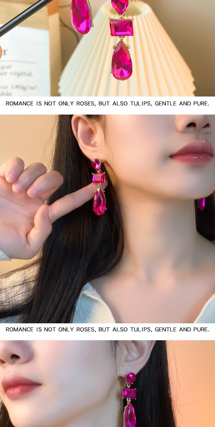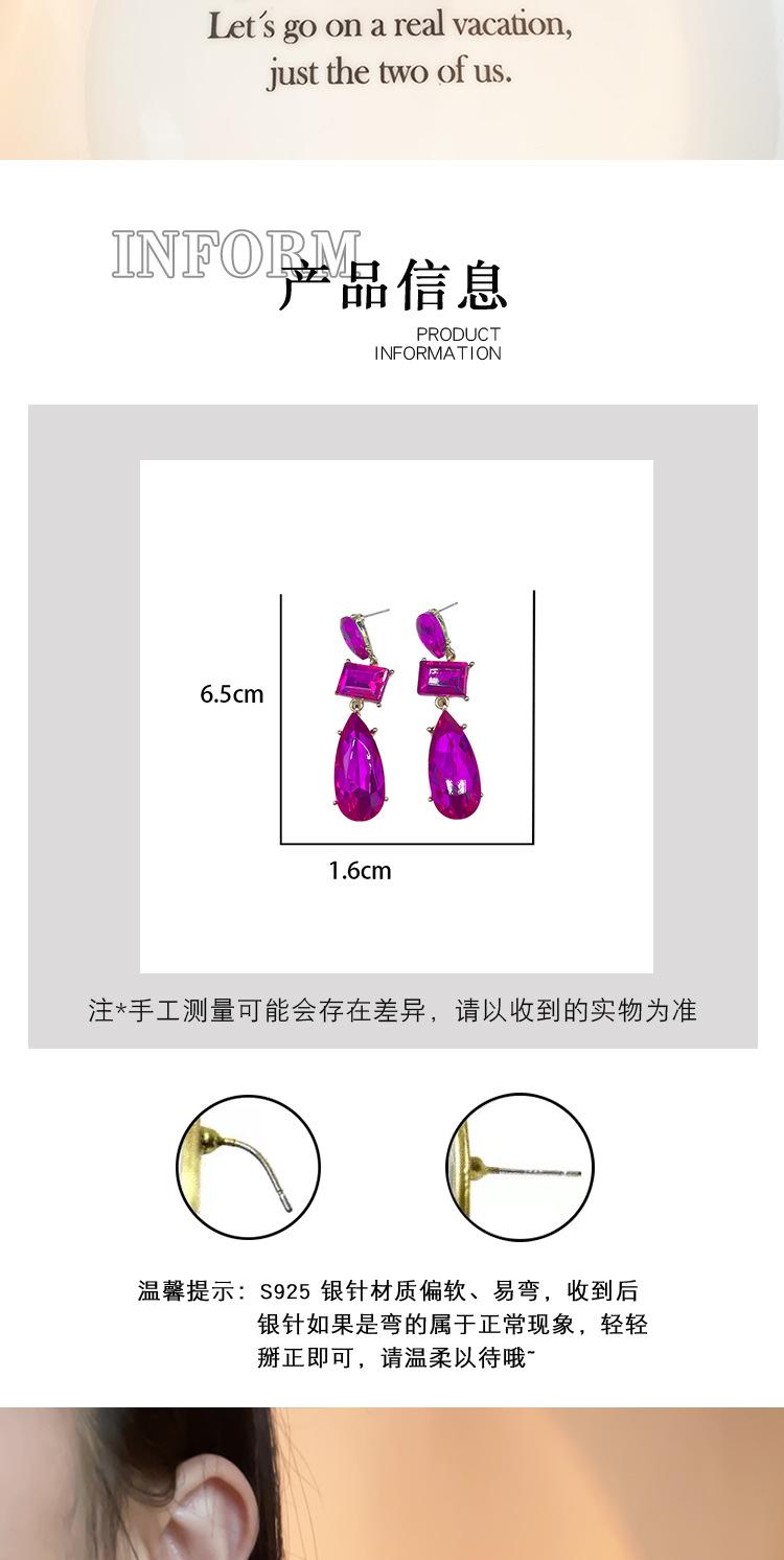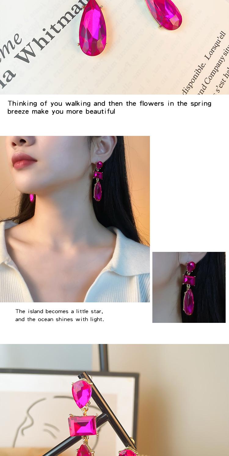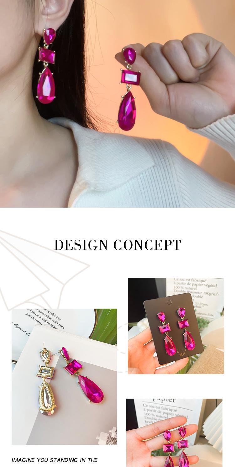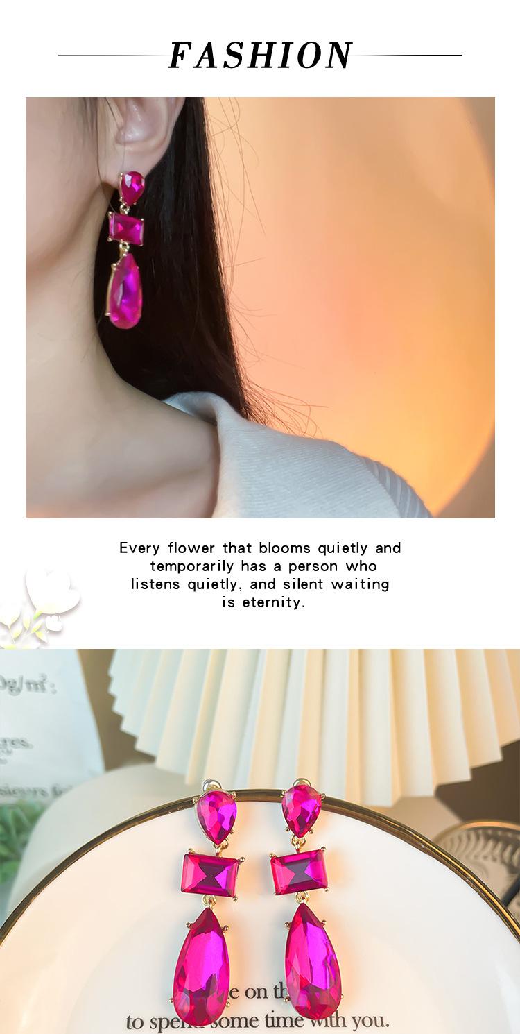 Pendientes geométricos sencillos de cristal morado con temperamento versátil, pendientes de moda de color dopamina, pendientes de estilo extranjero.