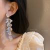 Pendientes exagerados de aguja de plata, de moda europea y americana, con doble capa geométrica, de metal cuadrado y diamantes con personalidad a juego.