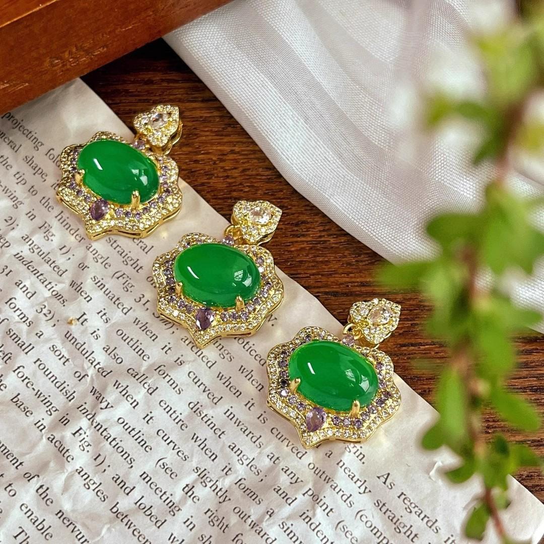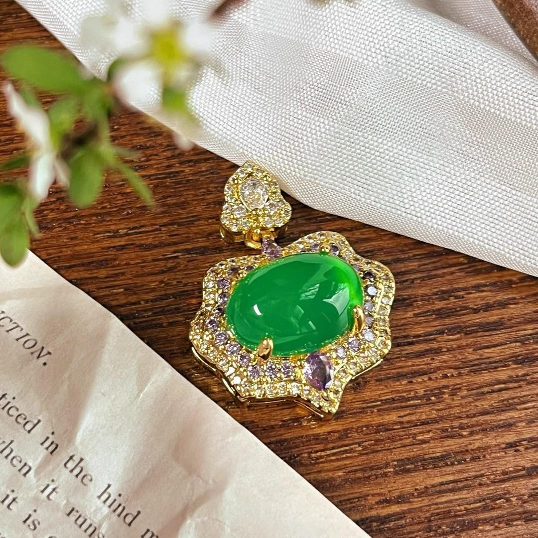 Colgante de jade Ruyi retro chino, colgante de calcedonia verde esmeralda natural, collar de nicho, gran oferta