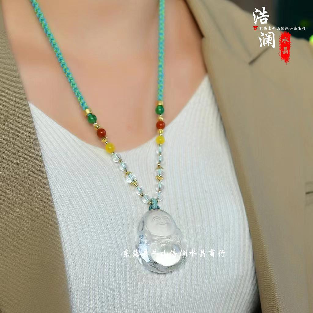 Colgante de Maitreya de cristal blanco natural grande de Haolan Crystal, collar, cadena de suéter, joyería, regalo, colgante de joyería