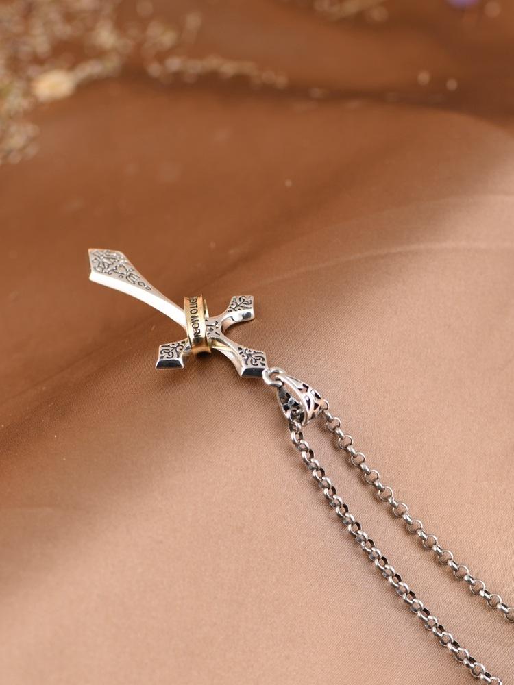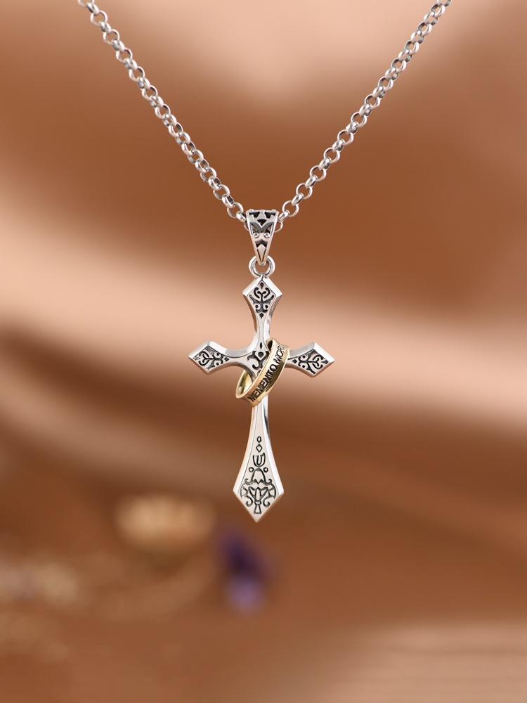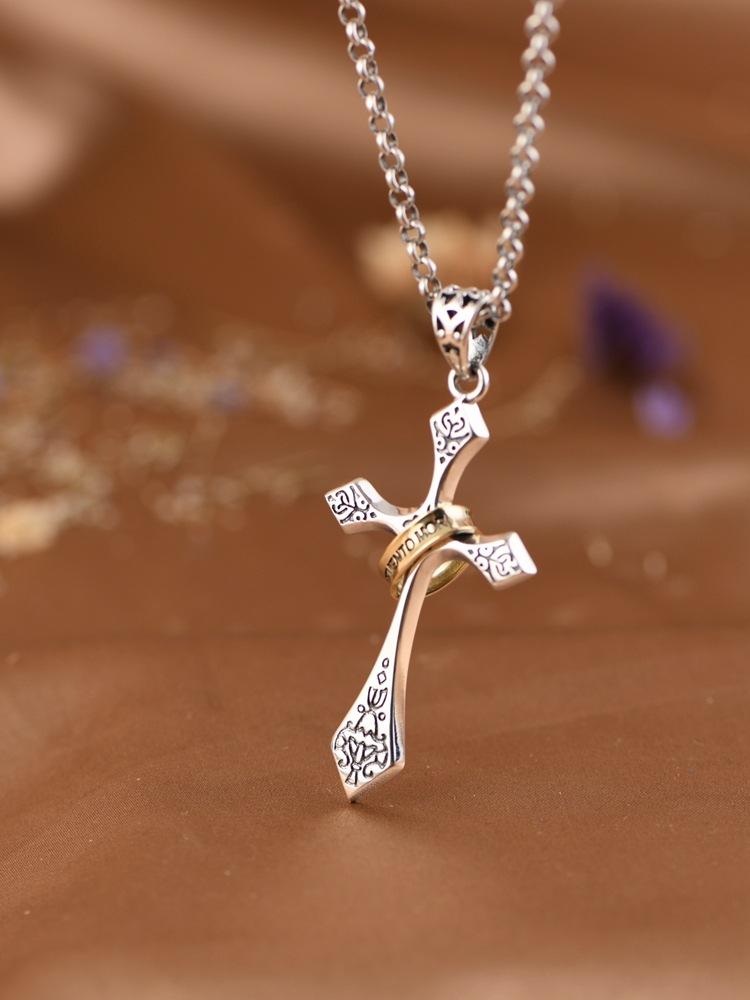 Compra Colgante de plata S925 con diseño de ciervo dorado y cruz de plata impresa, diseño moderno y sencillo, joyería tailandesa de plata para hombres y mujeres. al por mayor en Joom.pro