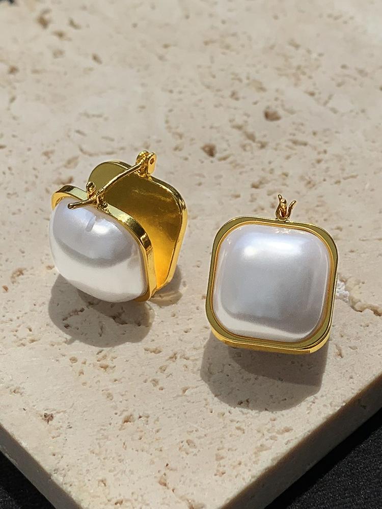 Compra Pendientes de perlas de doble cara con diseño cuadrado europeo y americano de alta gama para mujer, con hebilla, nuevos y elegantes pendientes retro. al por mayor en Joom.pro