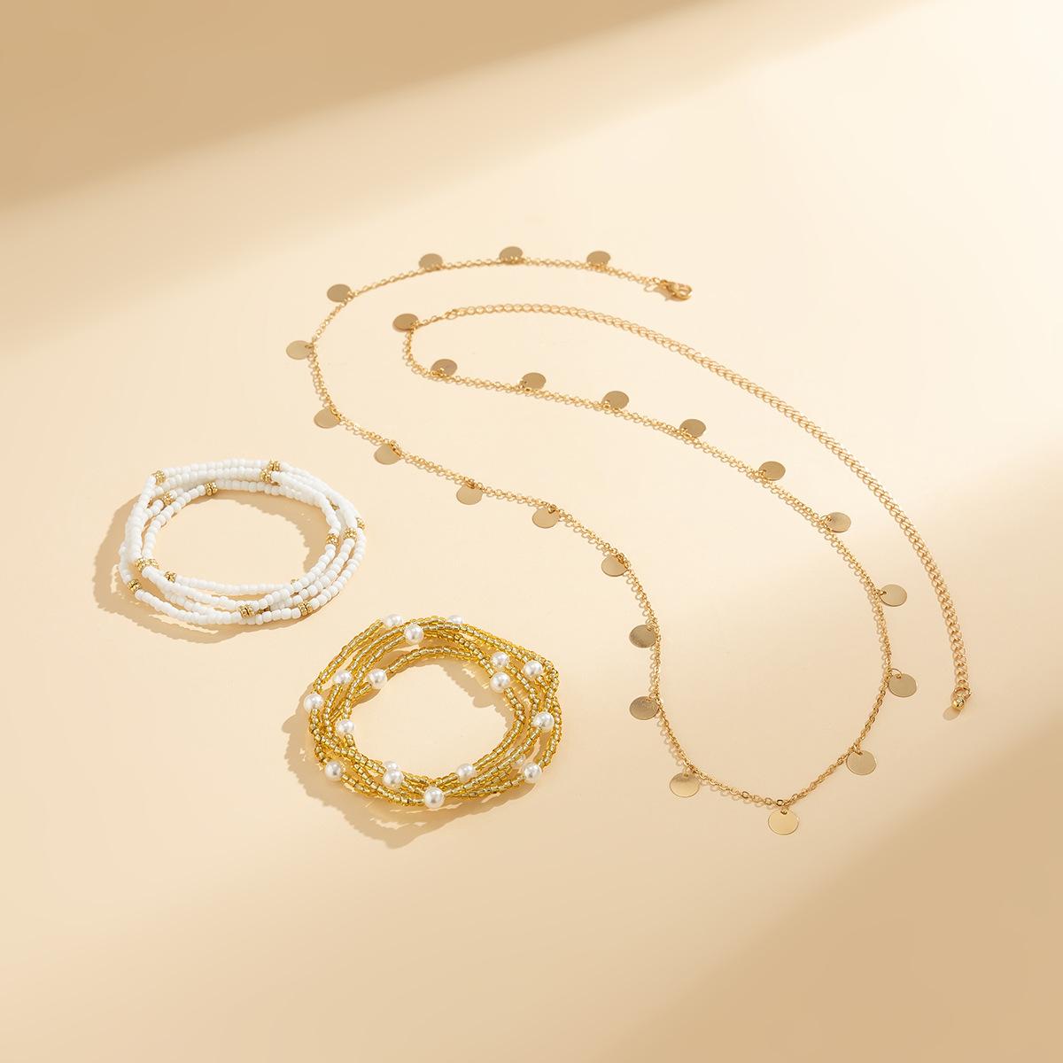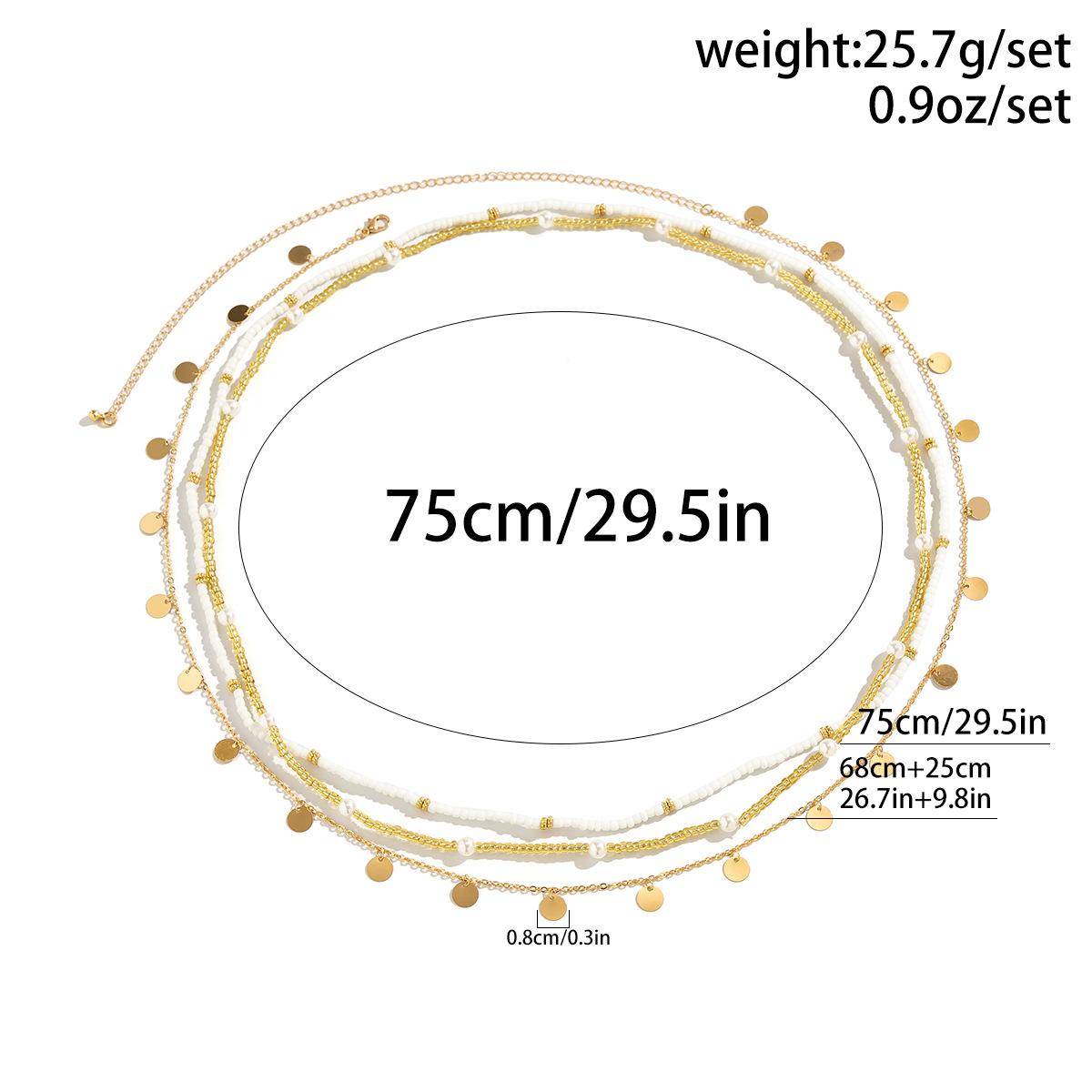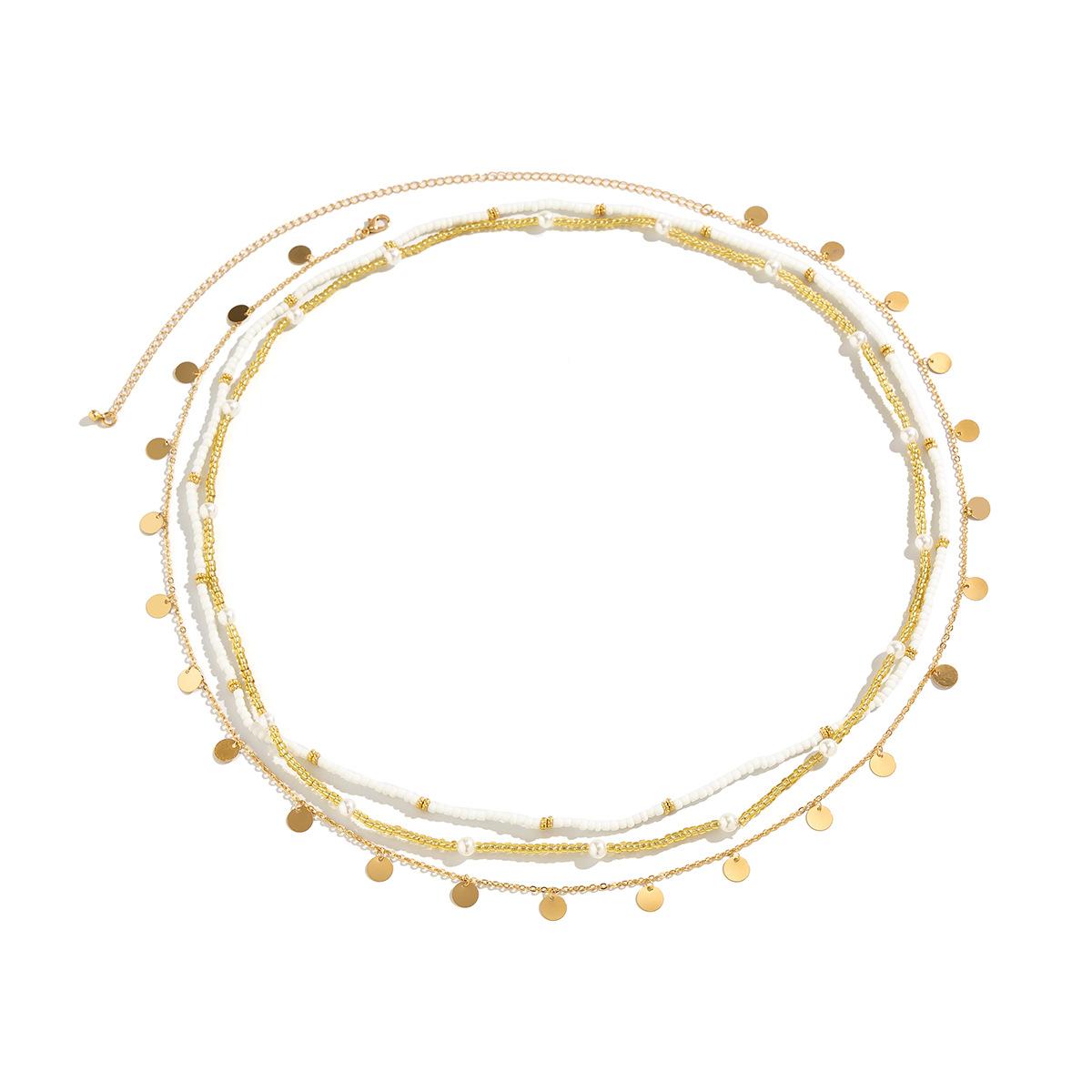 Categoría de producto: Cadena para la cintura (4914) Color del producto: Oro, Blanco K/Oro, Baño de plata Material del producto:Cadena de cobre + perlas de imitación/Cadena de cobre + perla de imitación Embalaje del producto: bolsa OPP, embalaje independiente. Peso y dimensiones del producto: Ver etiqueta de la imagen.(Las dimensiones y los pesos se miden manualmente, por lo que habrá un ligero error. Consulte el producto real. Preste atención al tamaño antes de comprar). |
