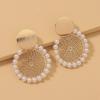Pendientes geométricos de perlas retro francesas, pendientes de temperamento de moda exagerada, pendientes de lujo ligeros de nicho de alta gama, venta al por mayor para mujeres