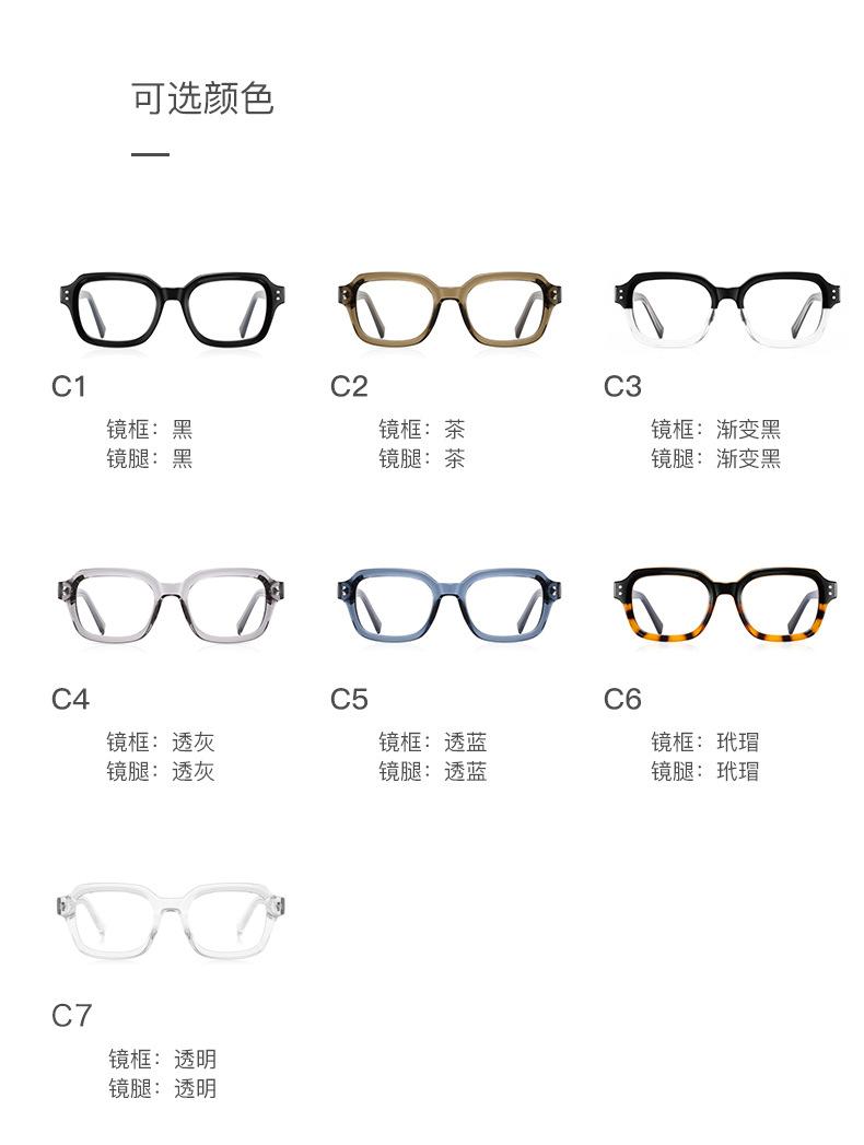 C1 black frame, C2 tea box, C3 gradient black frame, C4 transparent gray frame, C5 transparent blue frame, C6 ...