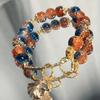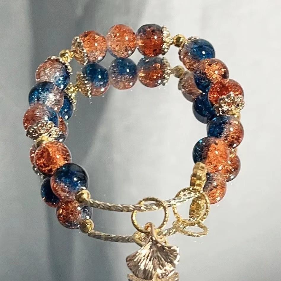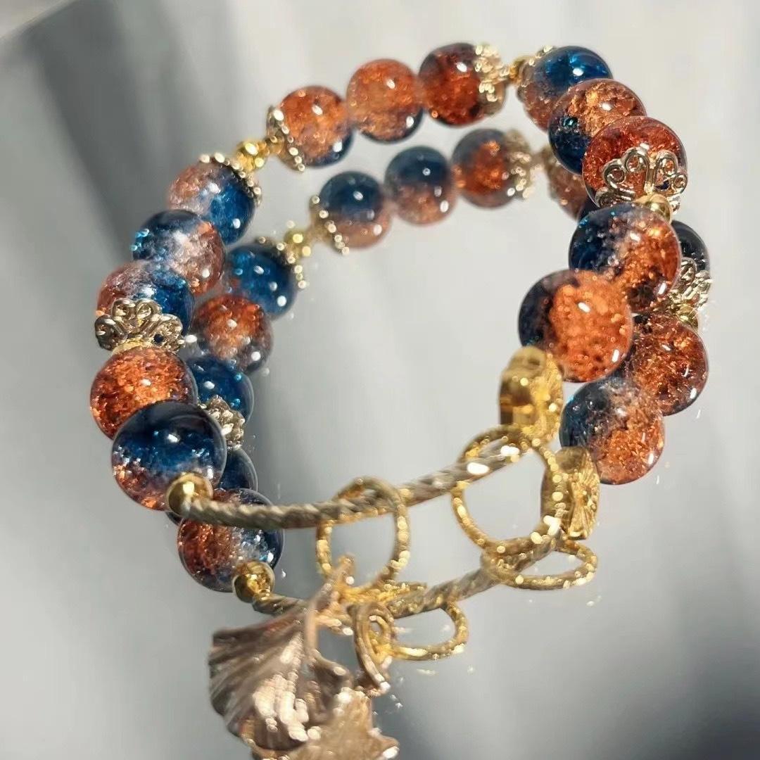 Pulsera de cuentas de vidrio de colores Dunhuang, pulsera de cuentas de hadas antiguas, nuevo estilo chino, pulsera con colgante de abanico de hojas, accesorios de temperamento femenino