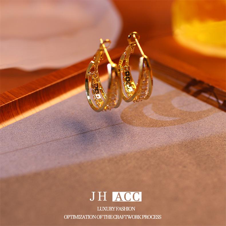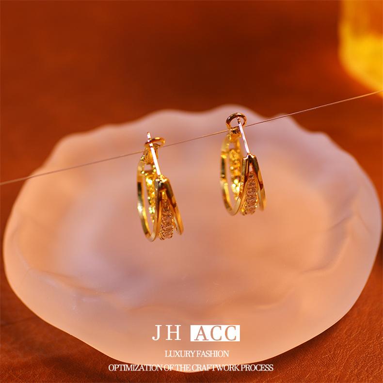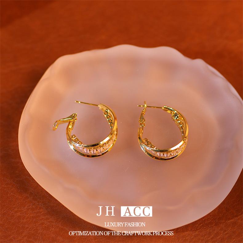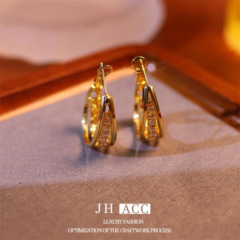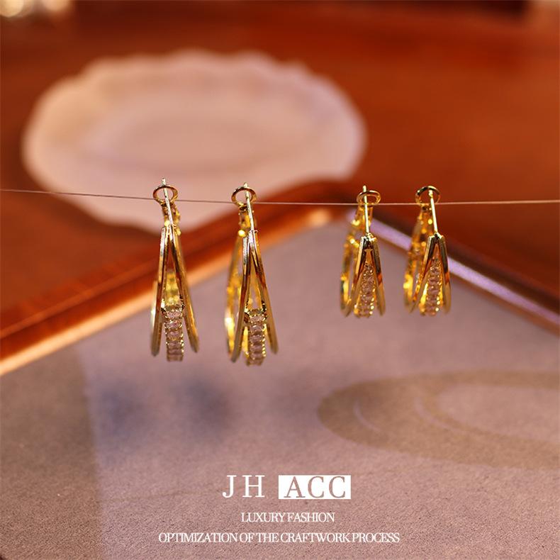 Jiehao Chao Temperamento de Lujo Ligero Aretes de Aro Dorados de Alta Gama para Mujer Aguja de Plata S925 Diseño Personalizado Aretes al Mayoreo