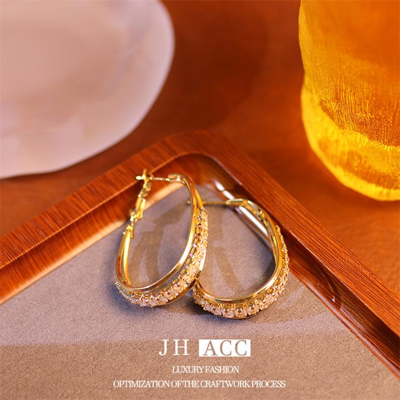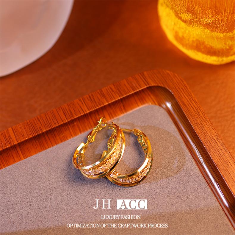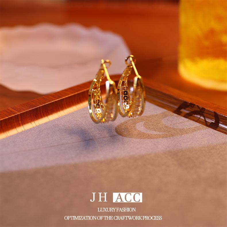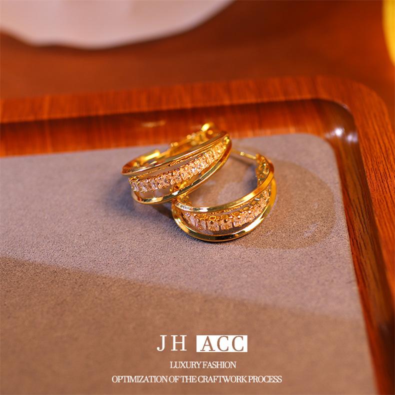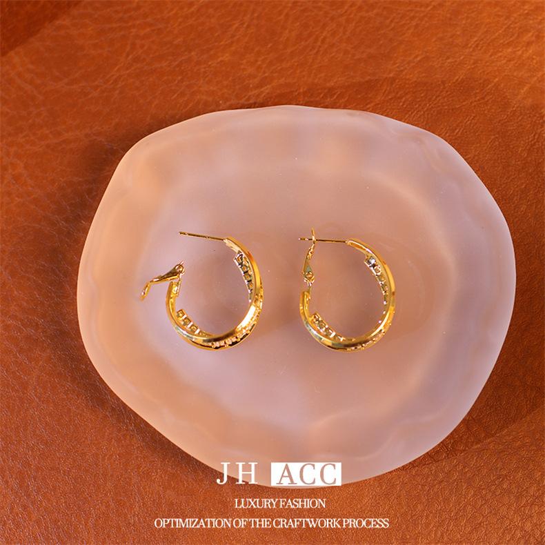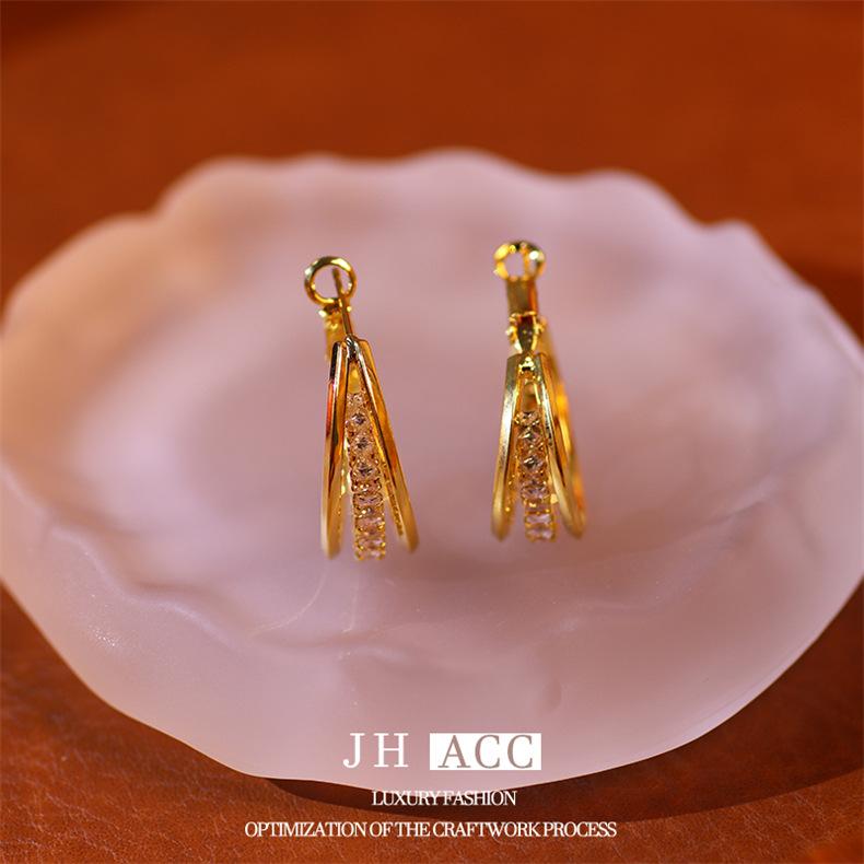Jiehao Chao Temperamento de Lujo Ligero Aretes de Aro Dorados de Alta Gama para Mujer Aguja de Plata S925 Diseño Personalizado Aretes al Mayoreo